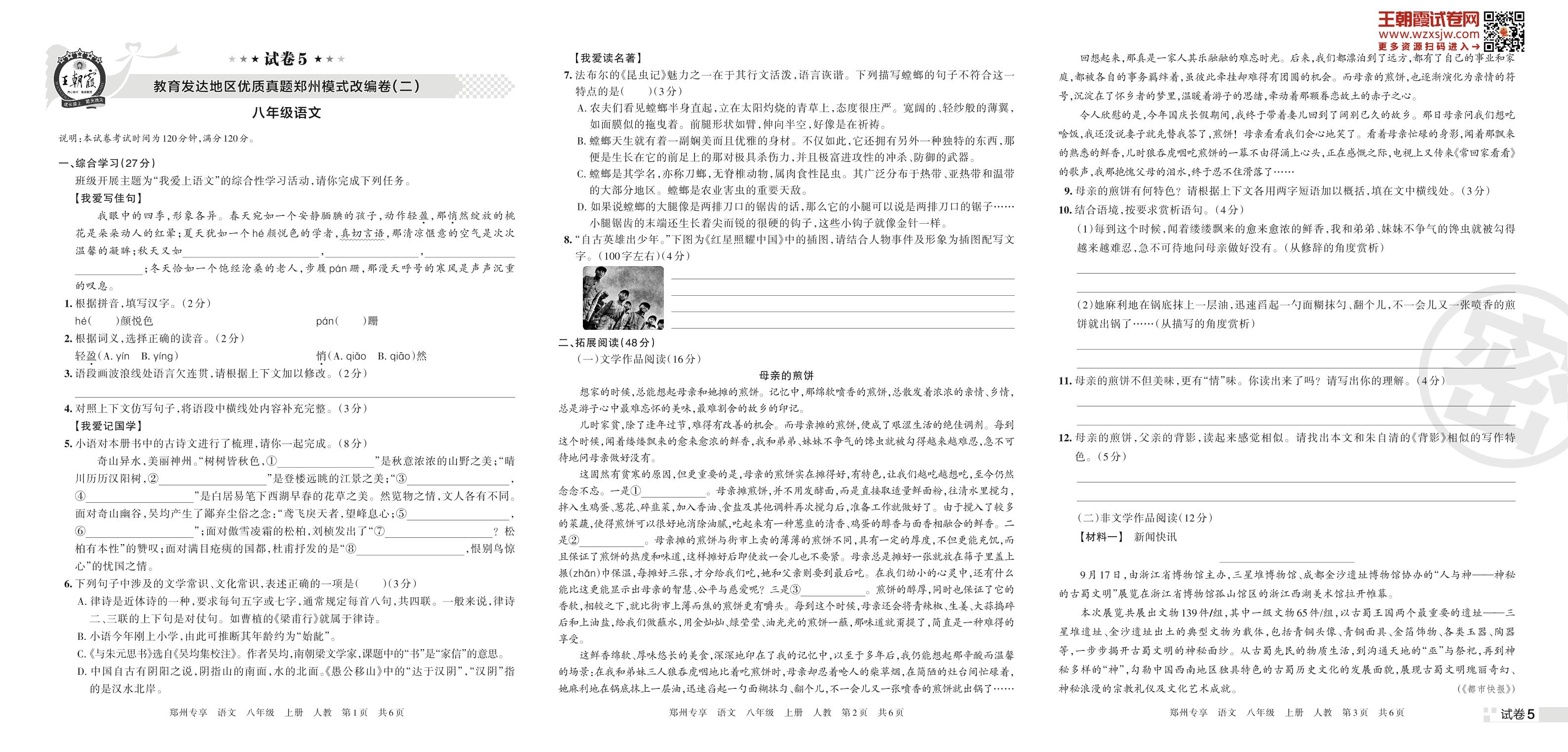 教育发达地区优质真题郑州模式改编卷(二)八年级上册语文(人教版)【5】
