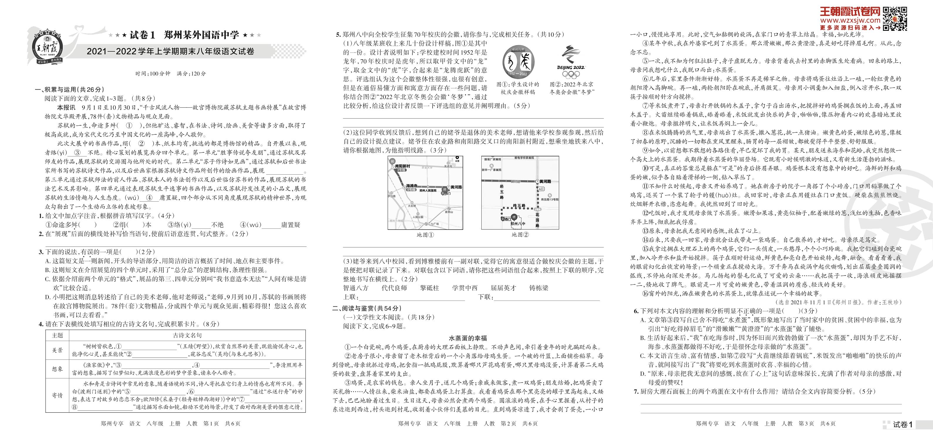 郑州某外国语中学2021—2022学年上学期期末八年级语文试卷(人教版)【1】
