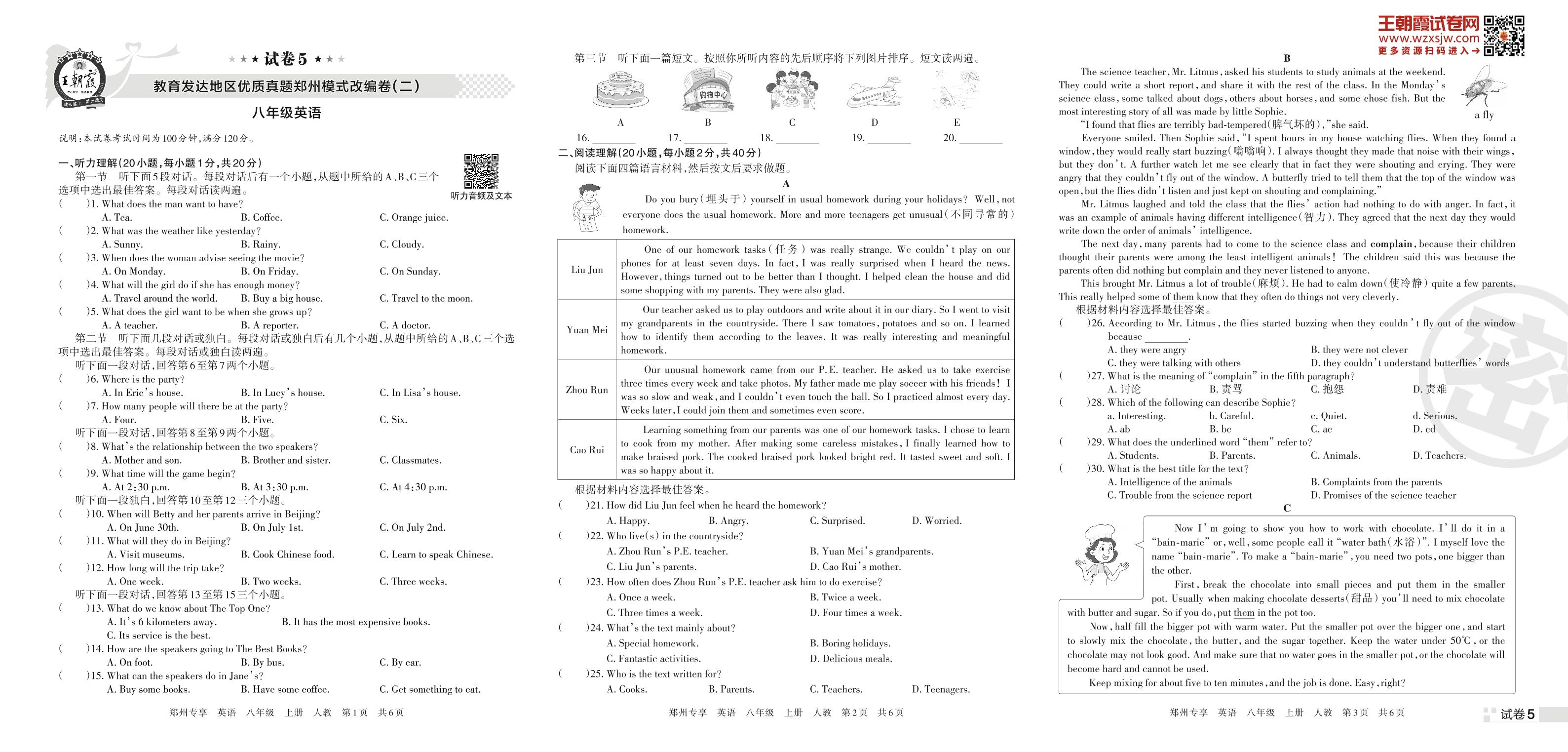 教育发达地区优质真题郑州模式改编卷(二)八年级上册英语(人教版)【5】