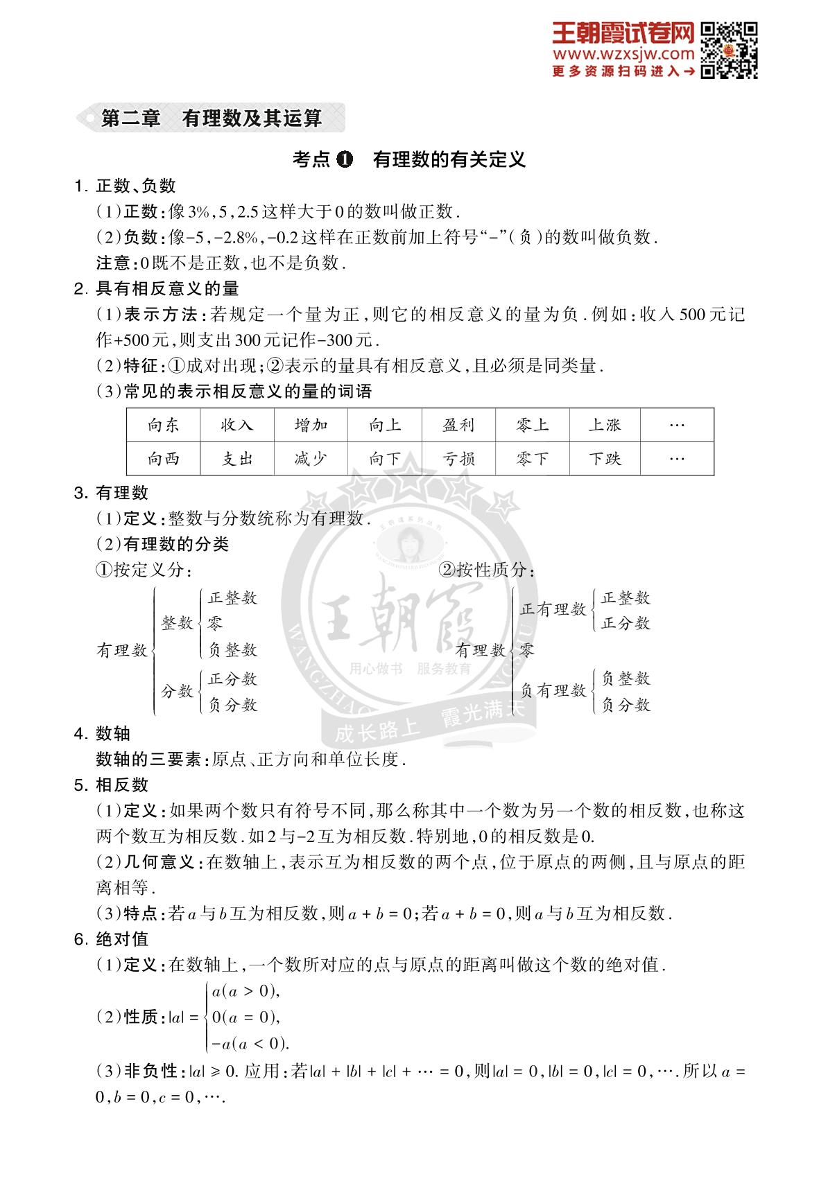 王朝霞期末过课本——第二章 有理数及其运算七年级上册数学(北师版)