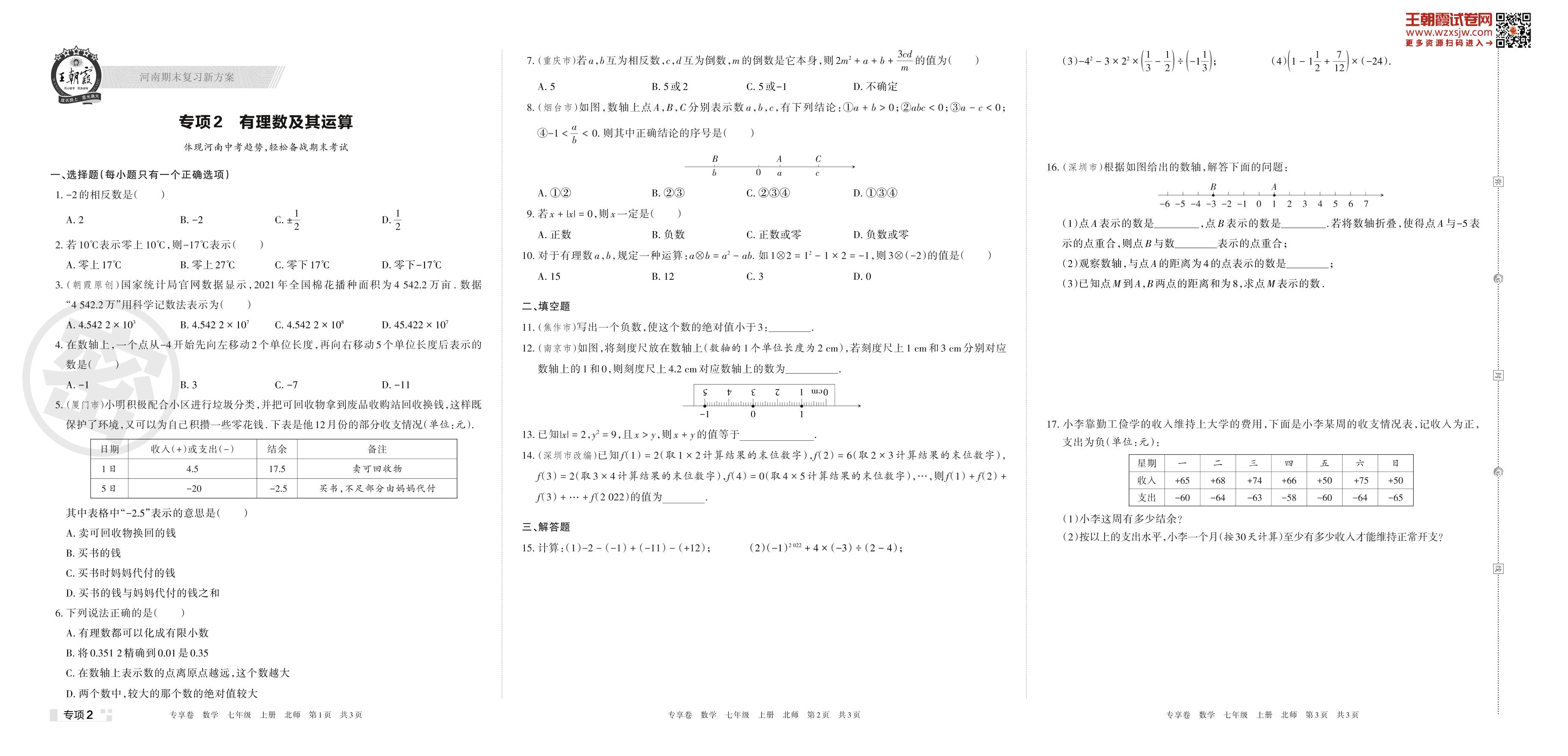 王朝霞期末专项卷——有理数及其运算七年级上册数学(北师版)【2】