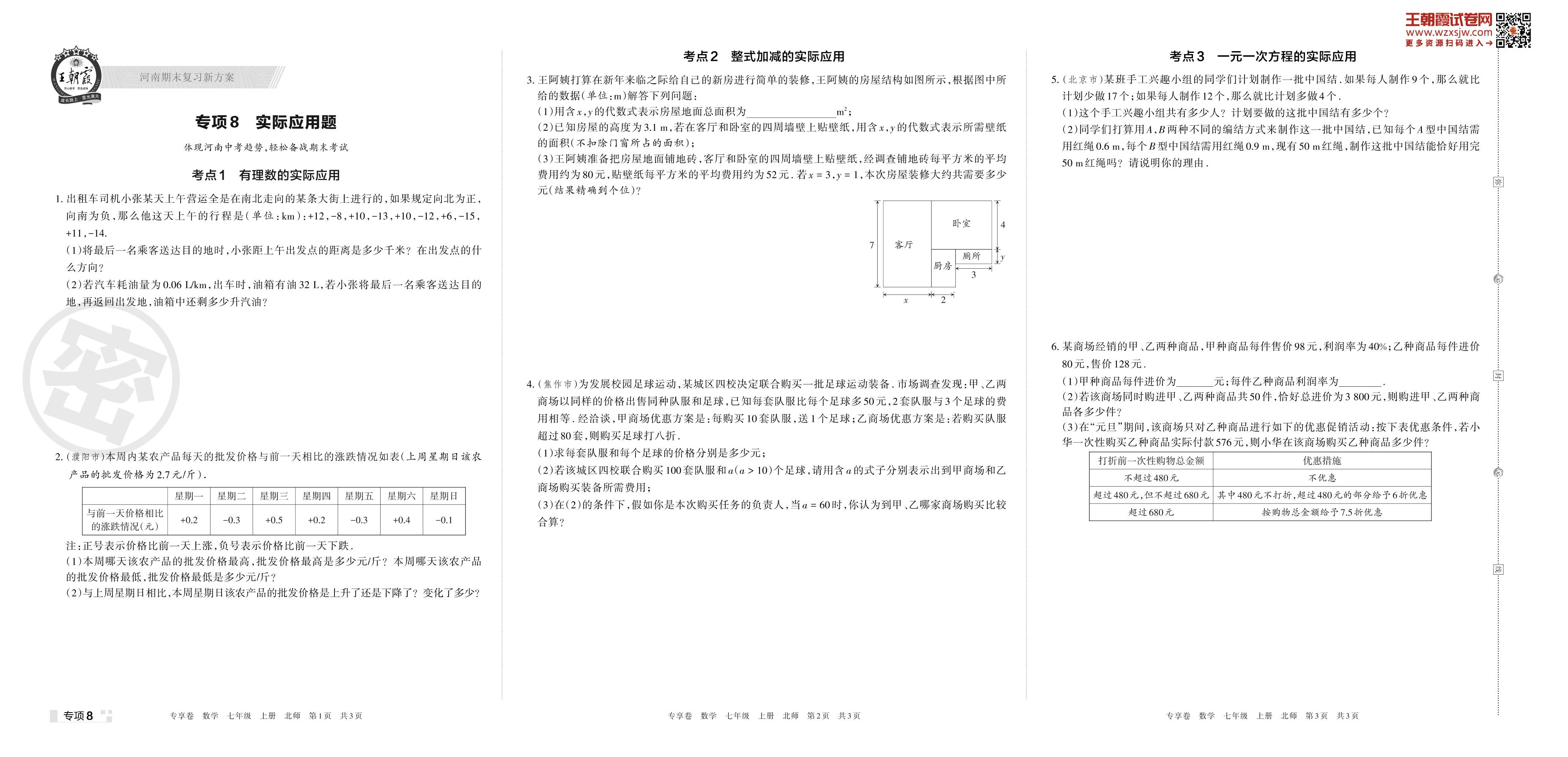 王朝霞期末专项卷——实际应用题七年级上册数学(北师版)【8】