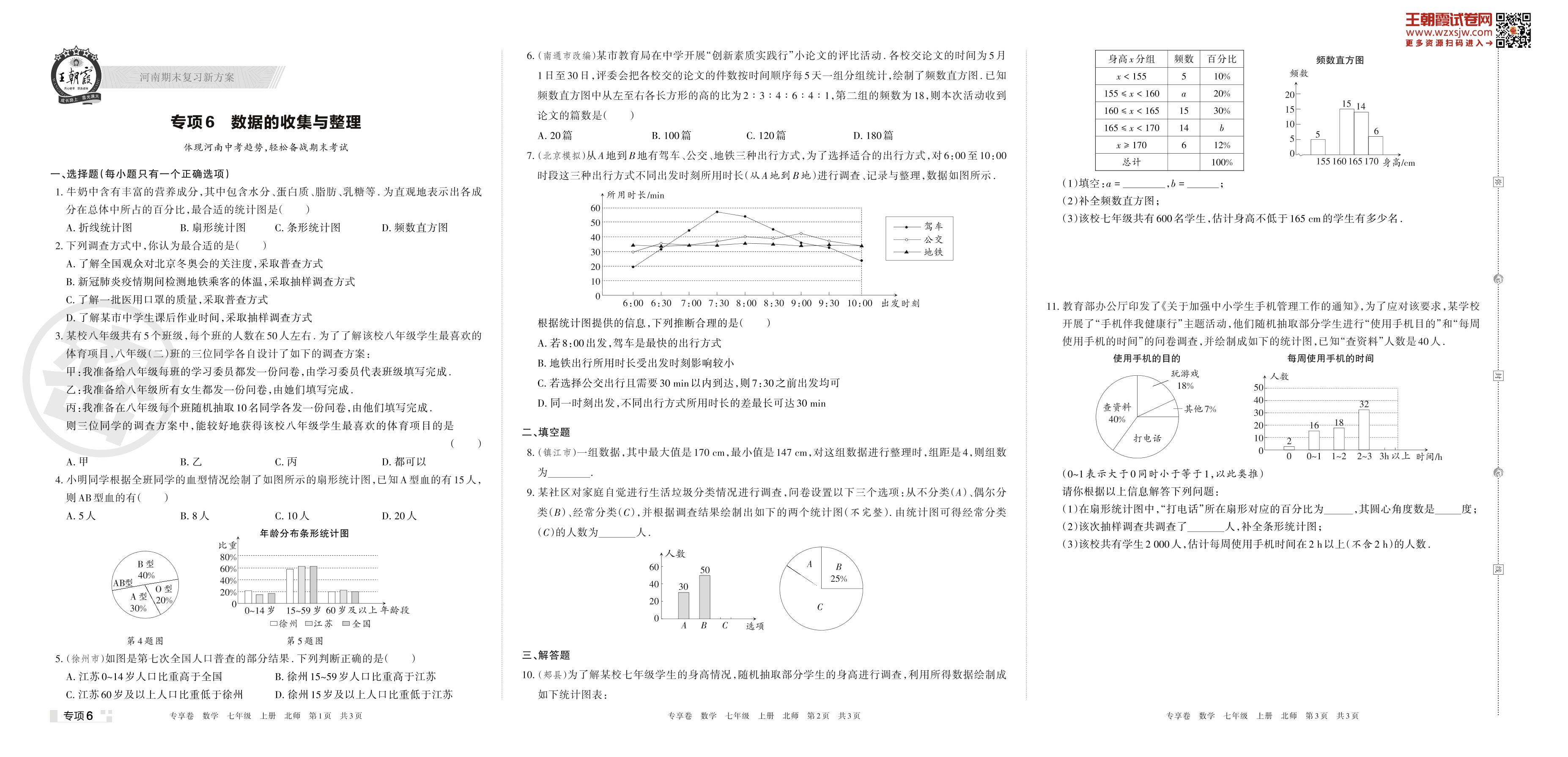 王朝霞期末专项卷——数据的收集与整理七年级上册数学(北师版)【6】