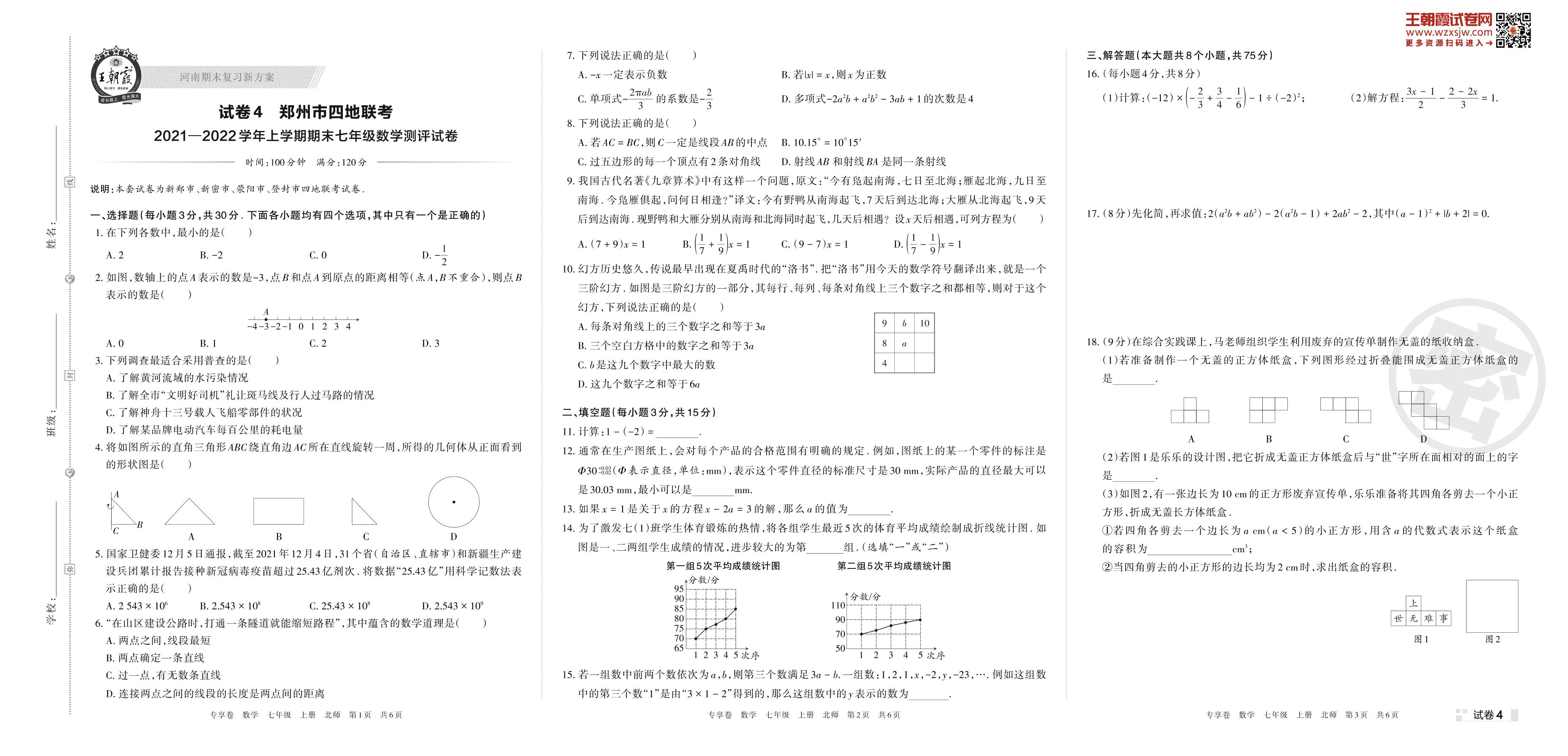 郑州市四地联考2021—2022学年上学期期末七年级数学测评试卷(北师版)【4】