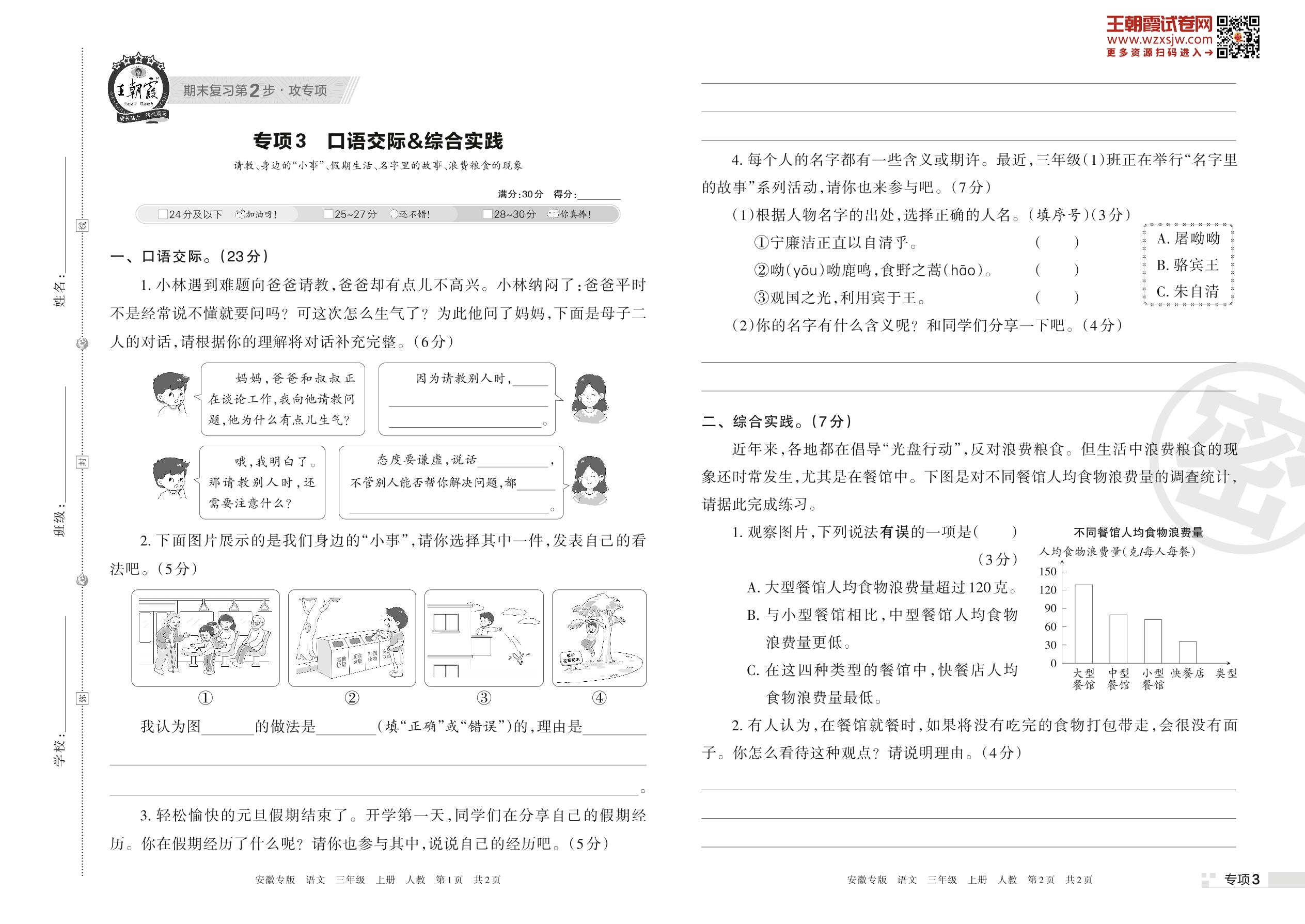 王朝霞期末专项卷——口语交际&综合实践三年级上册语文(人教版)【3】