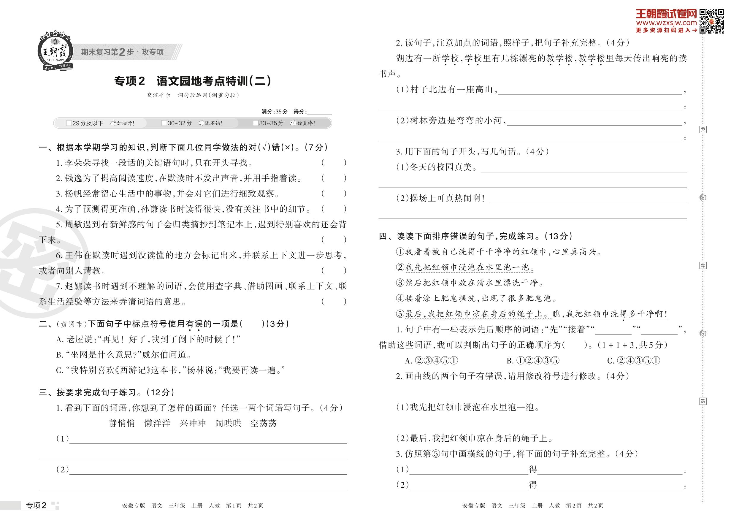 王朝霞期末专项卷——语文园地考点特训(二)三年级上册语文(人教版)_R221126200238771【2】
