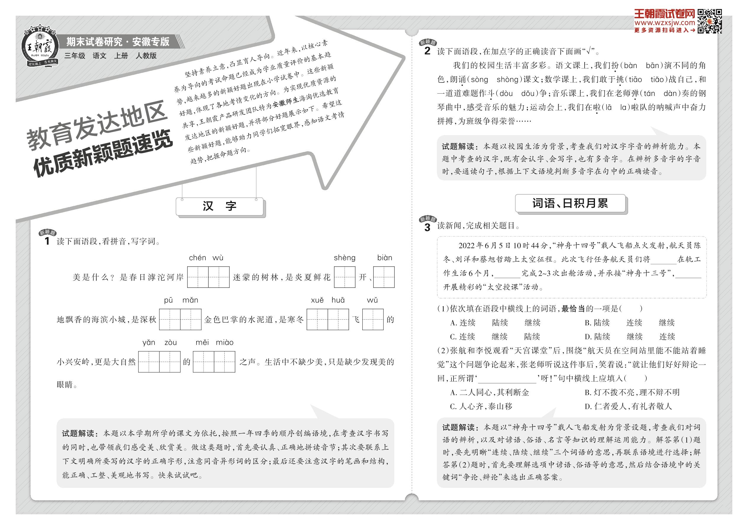 教育发达地区优质新颖题速览三年级上册语文(人教版)