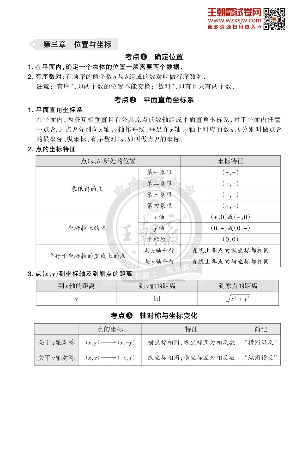 王朝霞期末过课本——第三章 位置与坐标八年级上册数学(北师版)