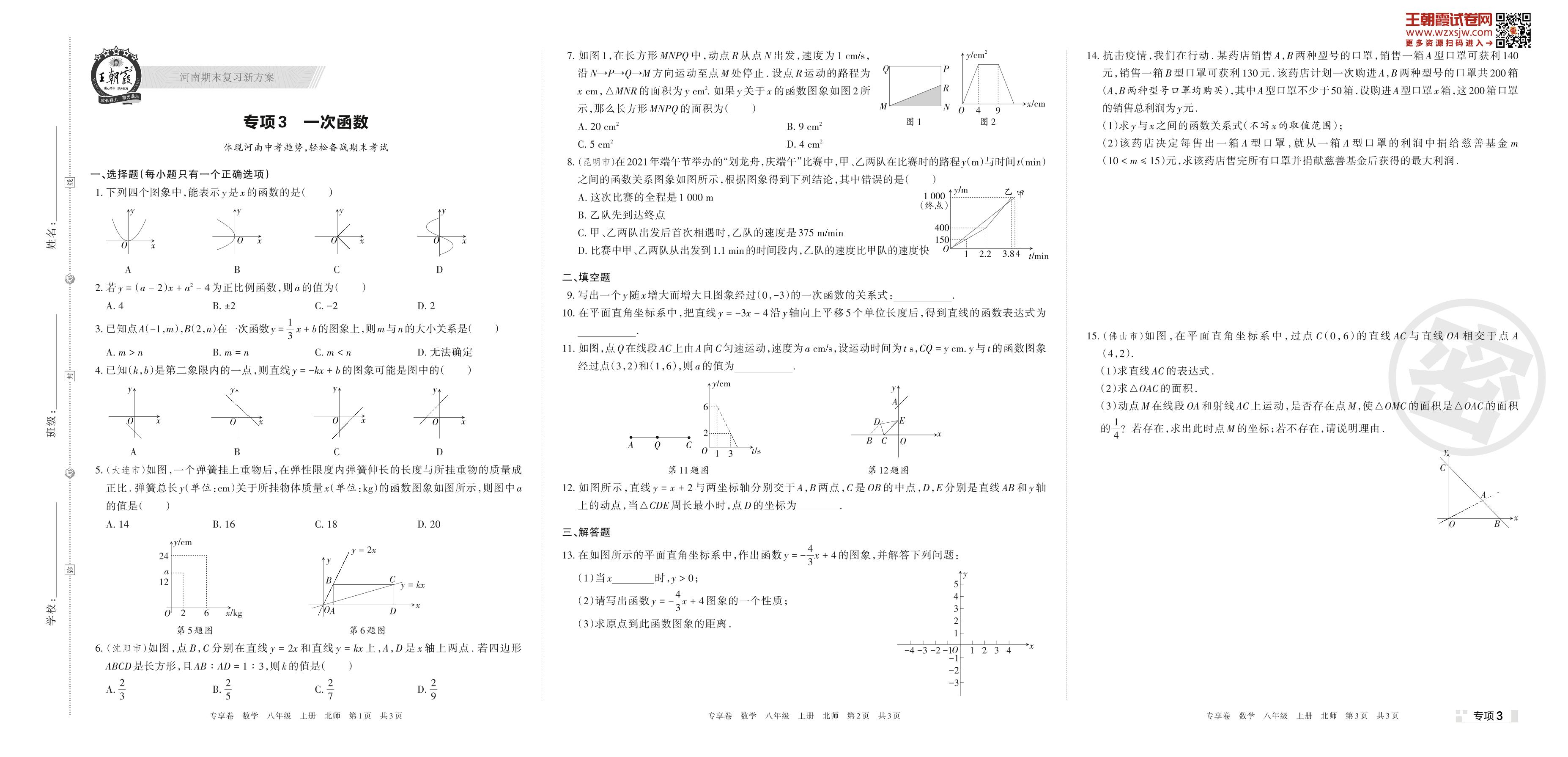 王朝霞期末专项卷——一次函数八年级上册数学(北师版)【3】