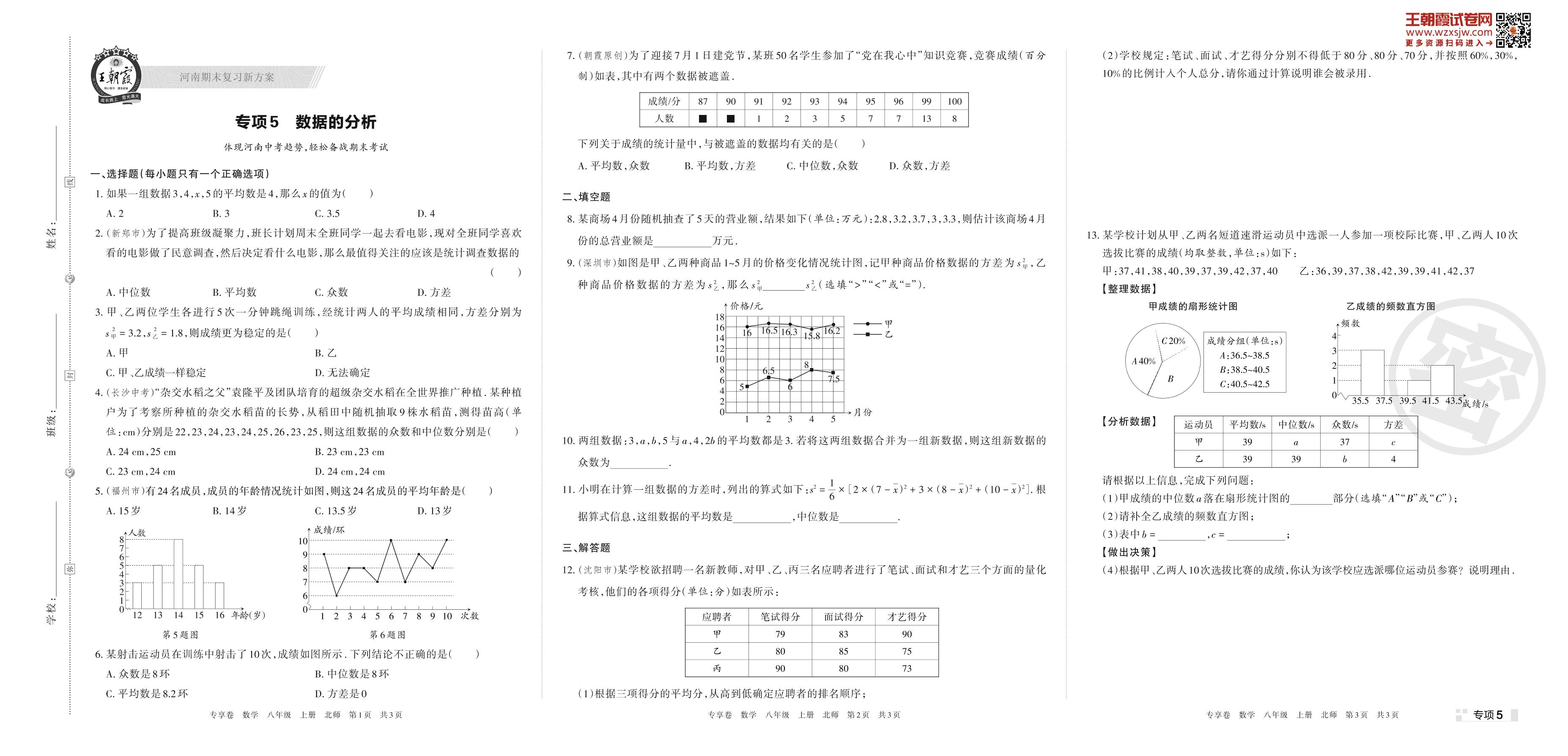 王朝霞期末专项卷——数据的分析八年级上册数学(北师版)【5】
