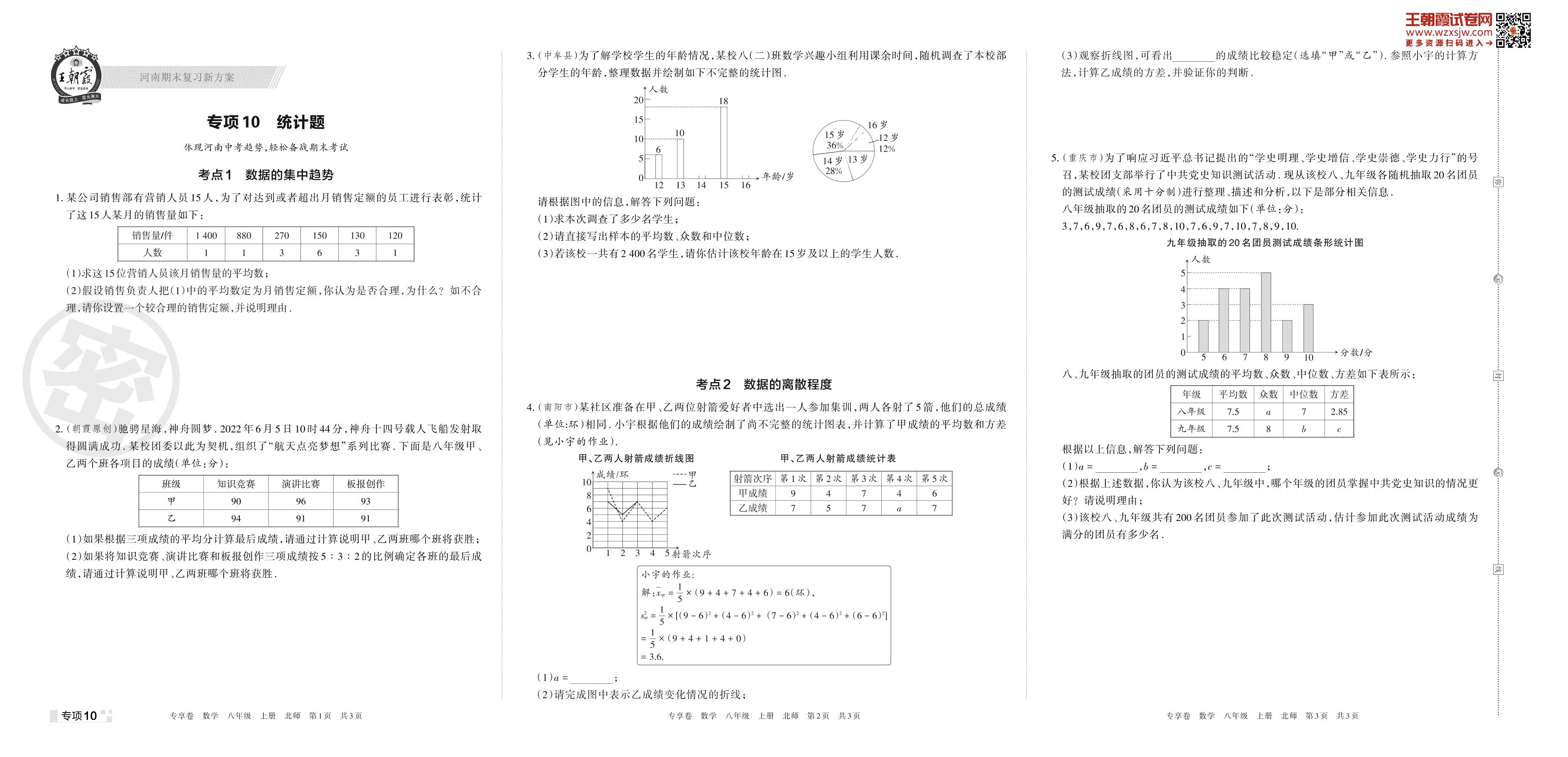 王朝霞期末专项卷——统计题八年级上册数学(北师版)【10】