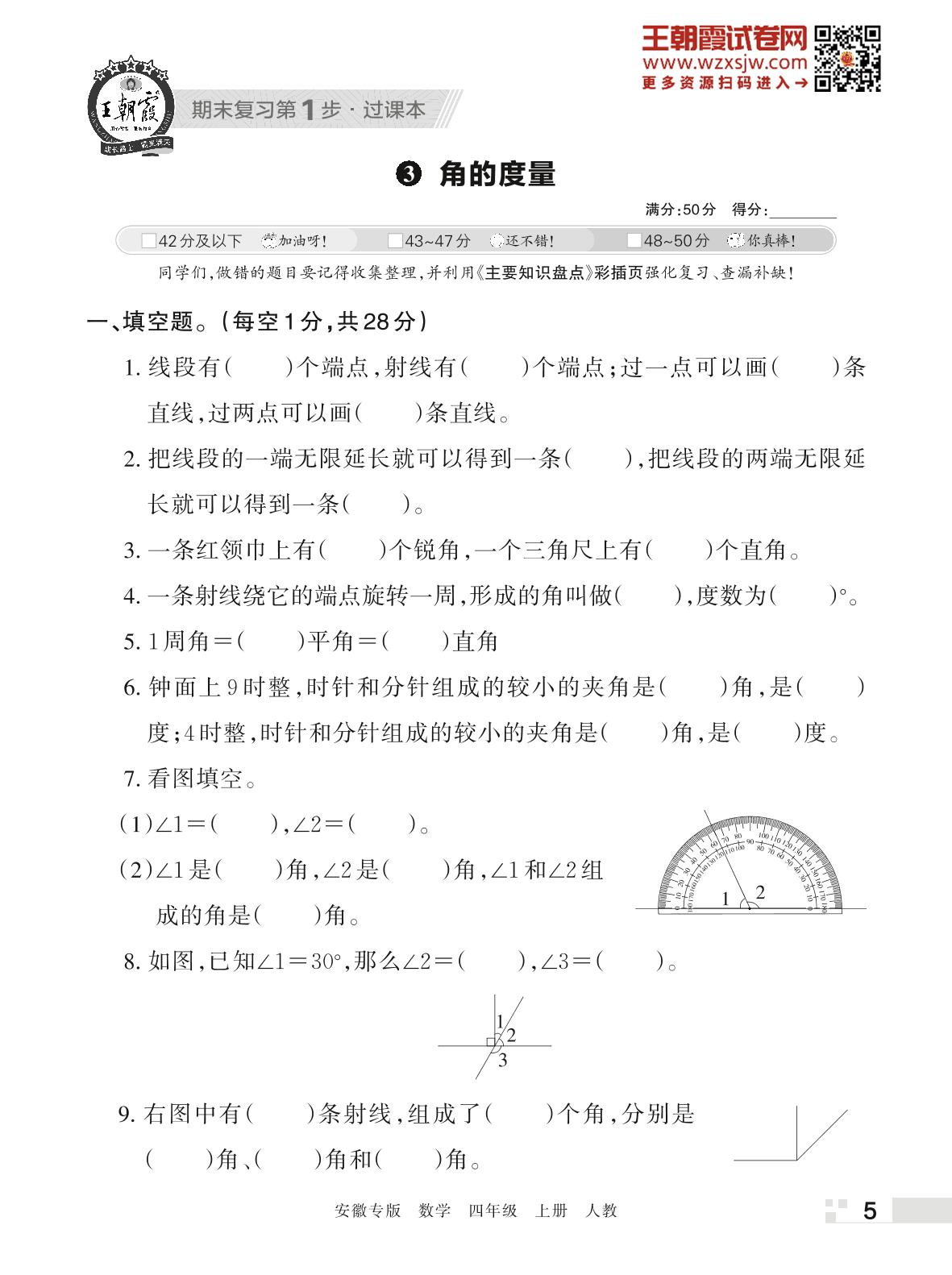 王朝霞期末过课本——3 角的度量四年级上册数学(人教版)_R221126202505774