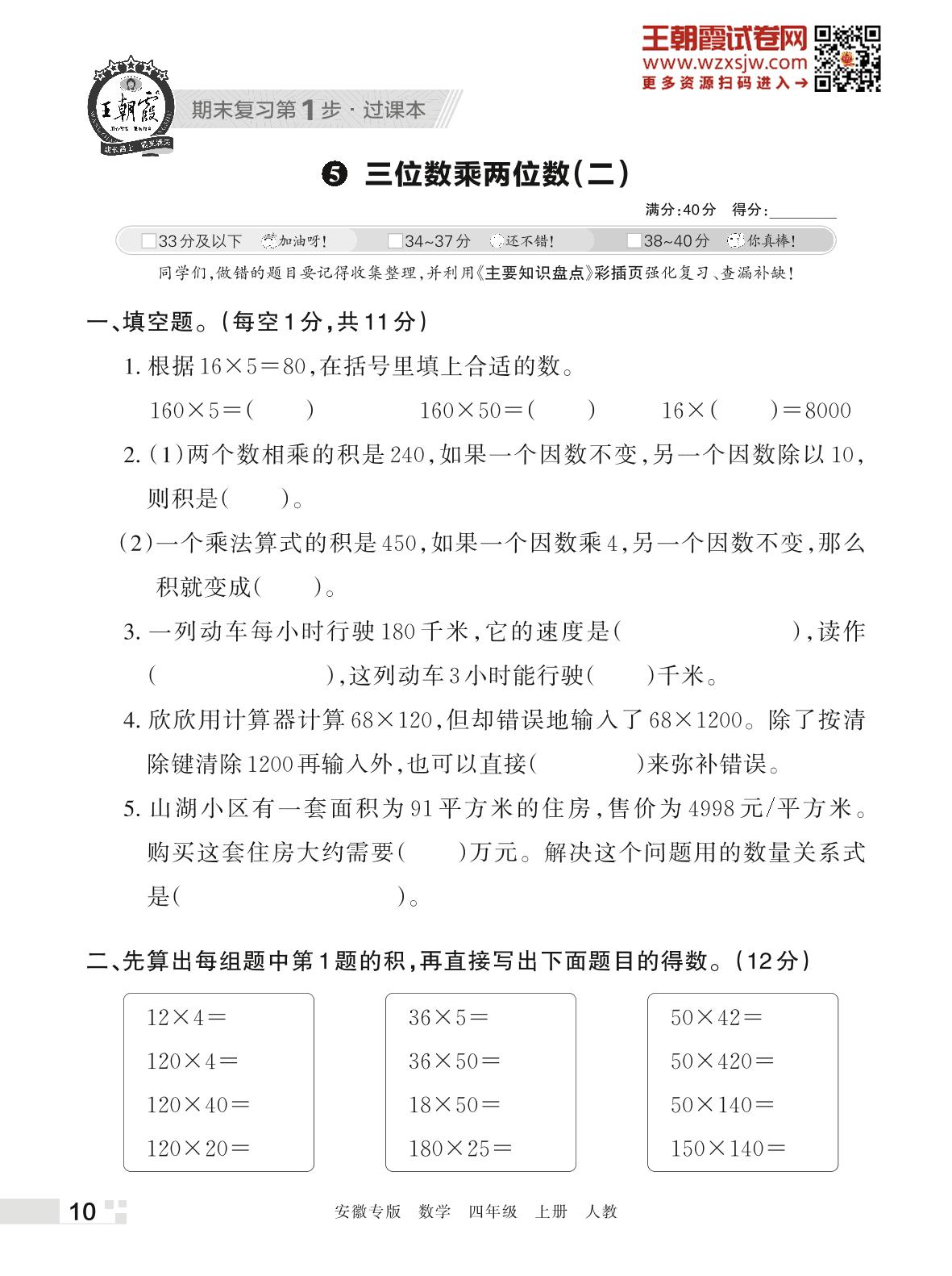 王朝霞期末过课本——5 三位数乘两位数(二)四年级上册数学(人教版)_R221126202505231