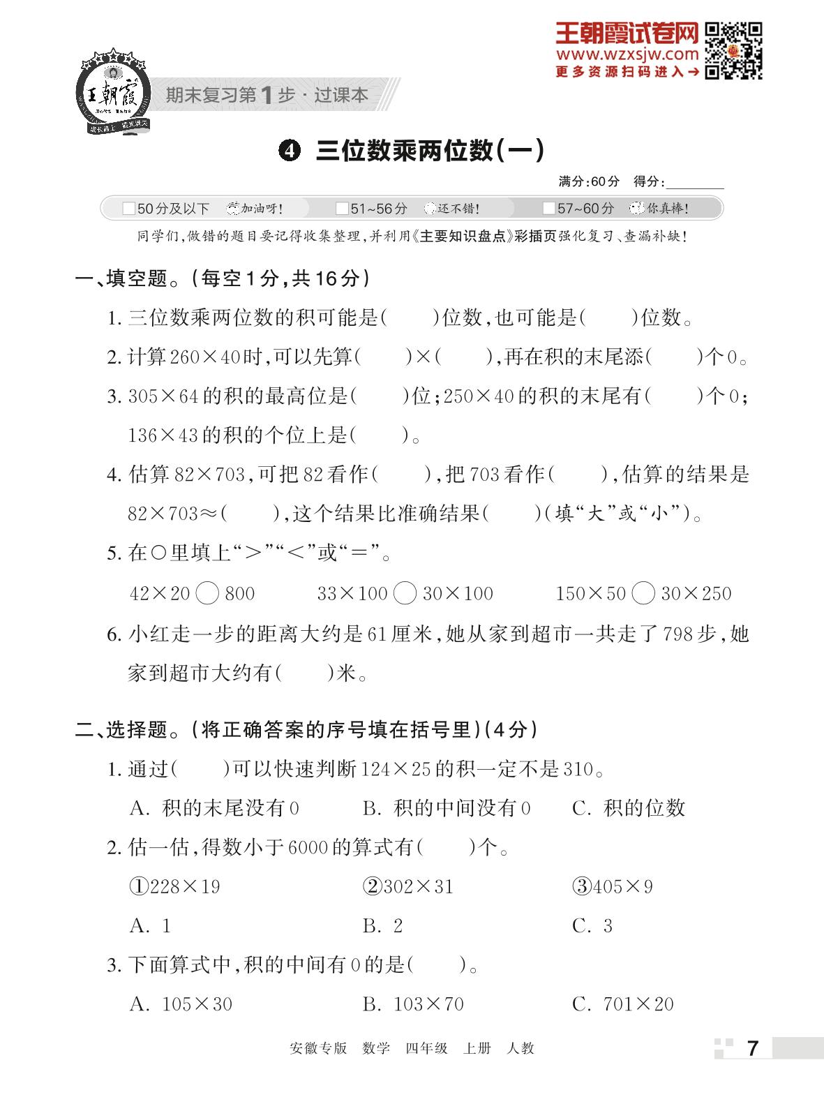 王朝霞期末过课本——4 三位数乘两位数(一)四年级上册数学(人教版)_R221126202506010