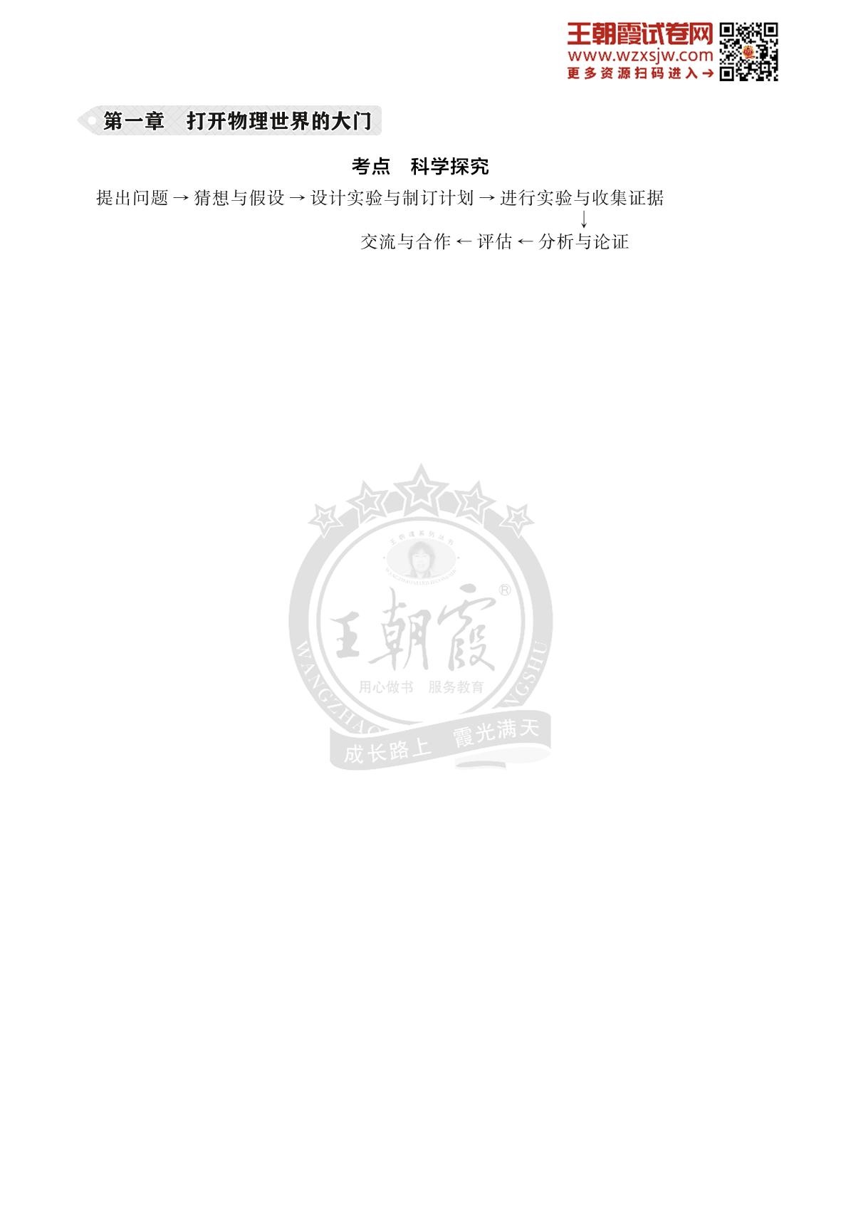 王朝霞期末过课本——第一章 打开物理世界的大门八年级上册物理(沪科版)
