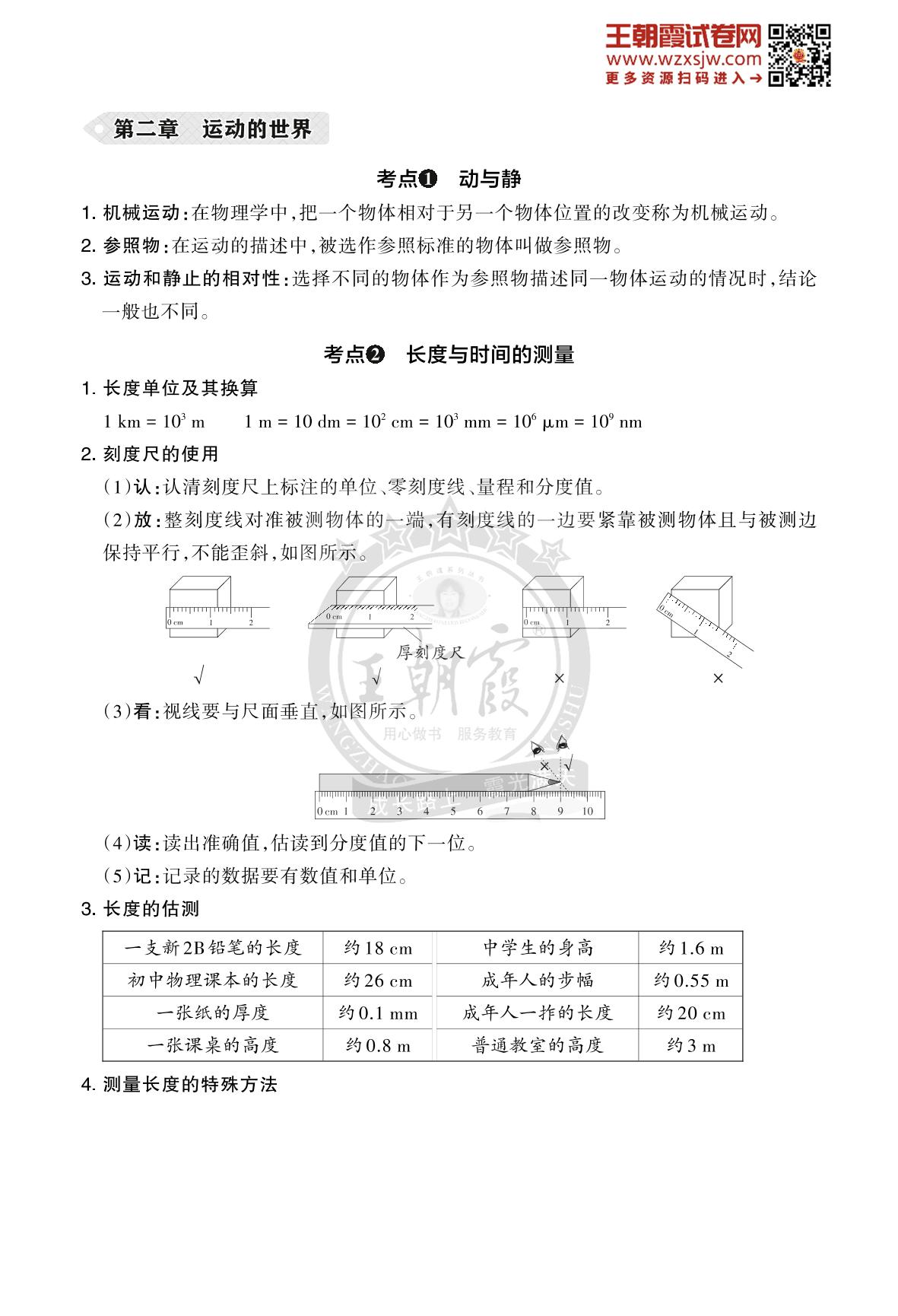 王朝霞期末过课本——第二章 运动的世界八年级上册物理(沪科版)