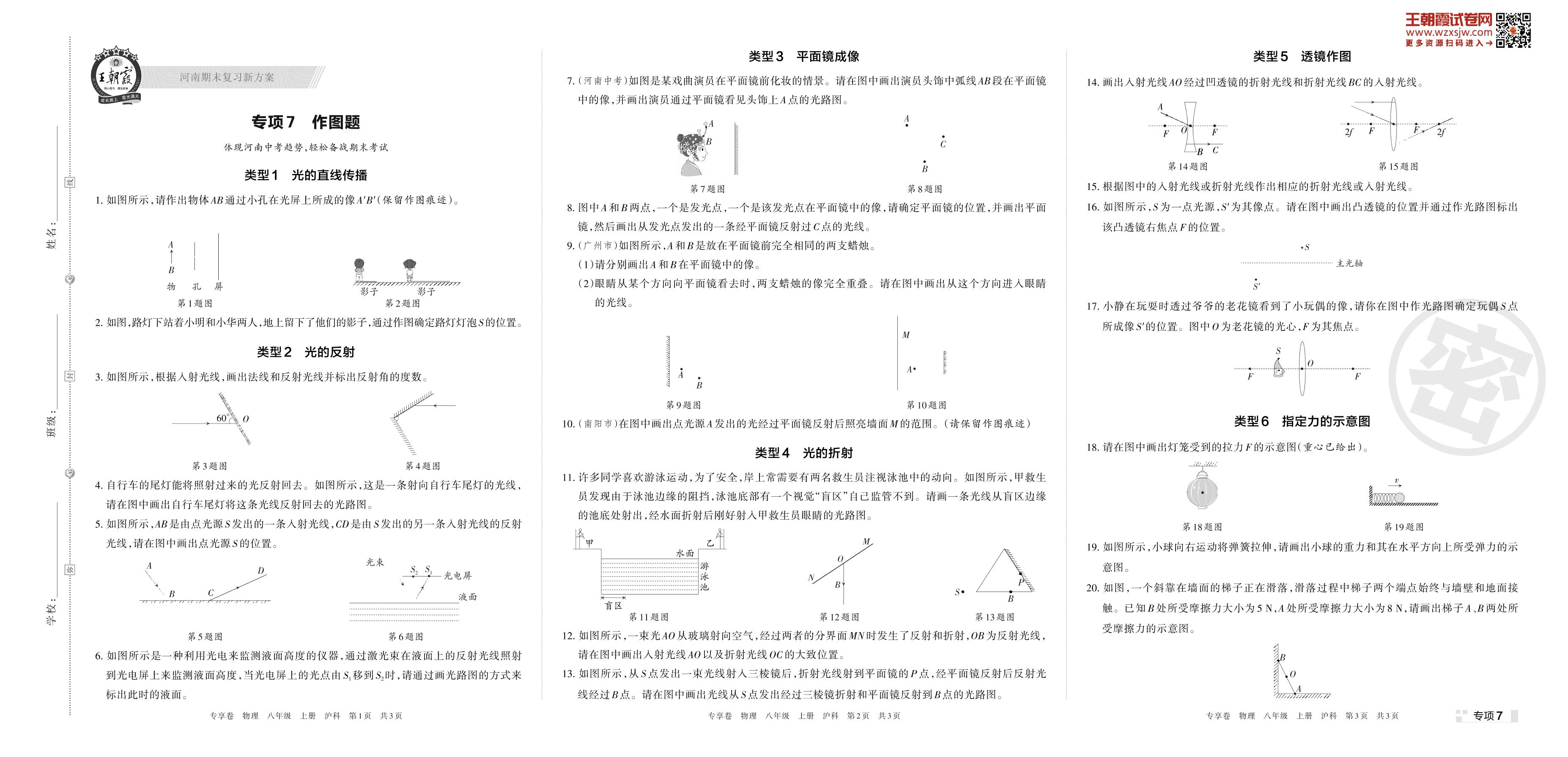 王朝霞期末专项卷——作图题八年级上册物理(沪科版)【7】