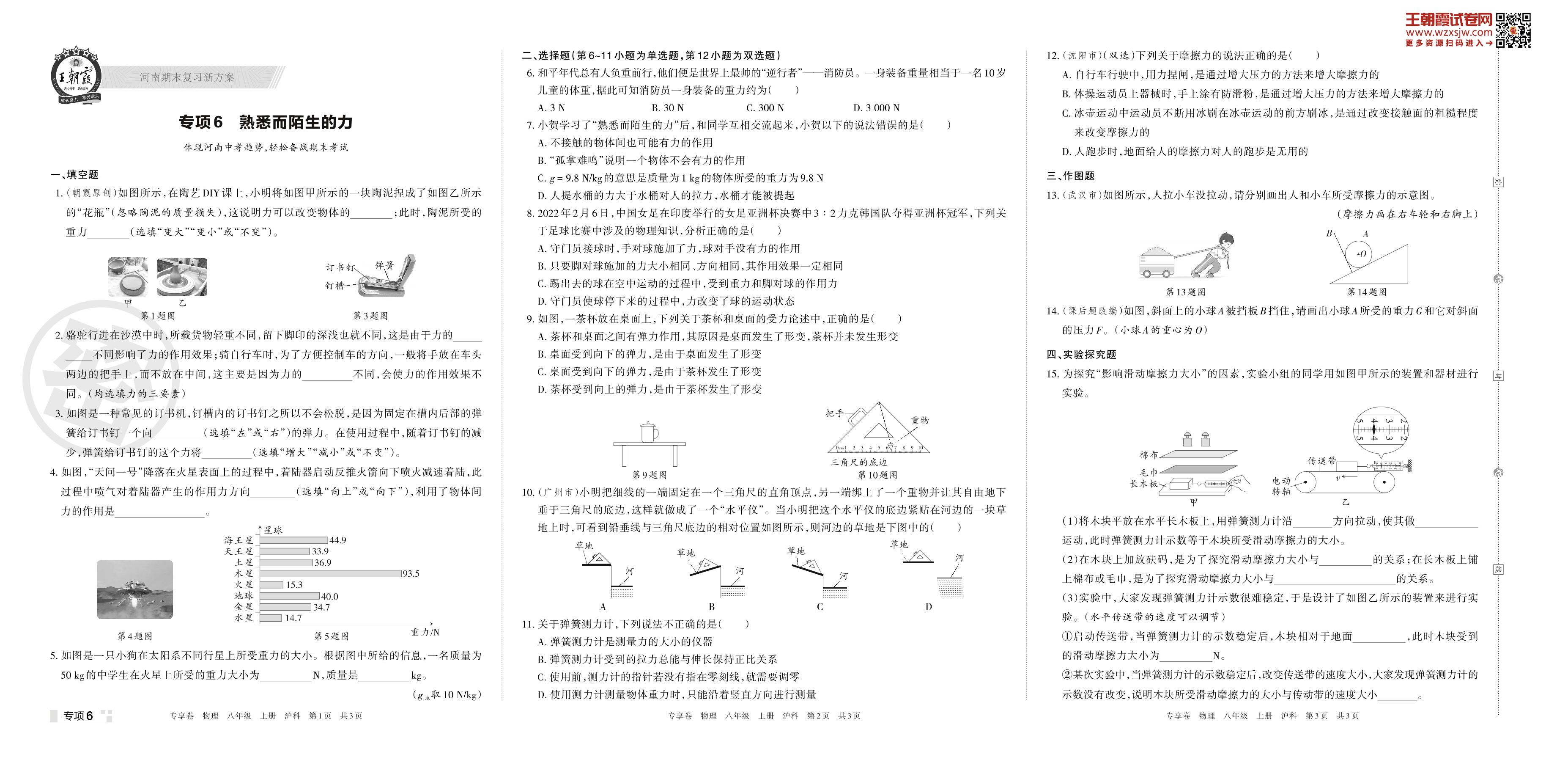 王朝霞期末专项卷——熟悉而陌生的力八年级上册物理(沪科版)【6】
