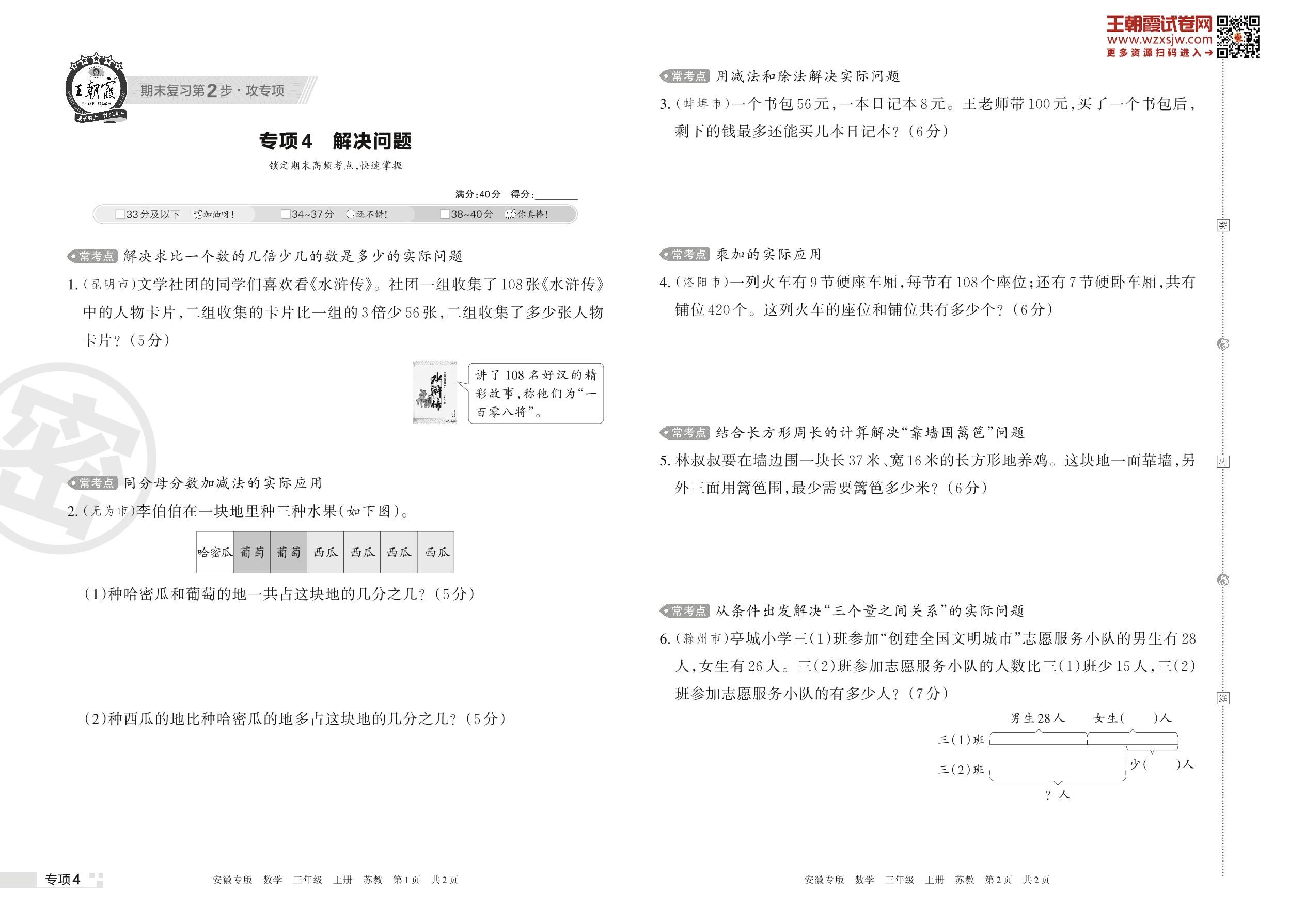王朝霞期末专项卷——解决问题三年级上册数学(苏教版)_R221126205905038【4】