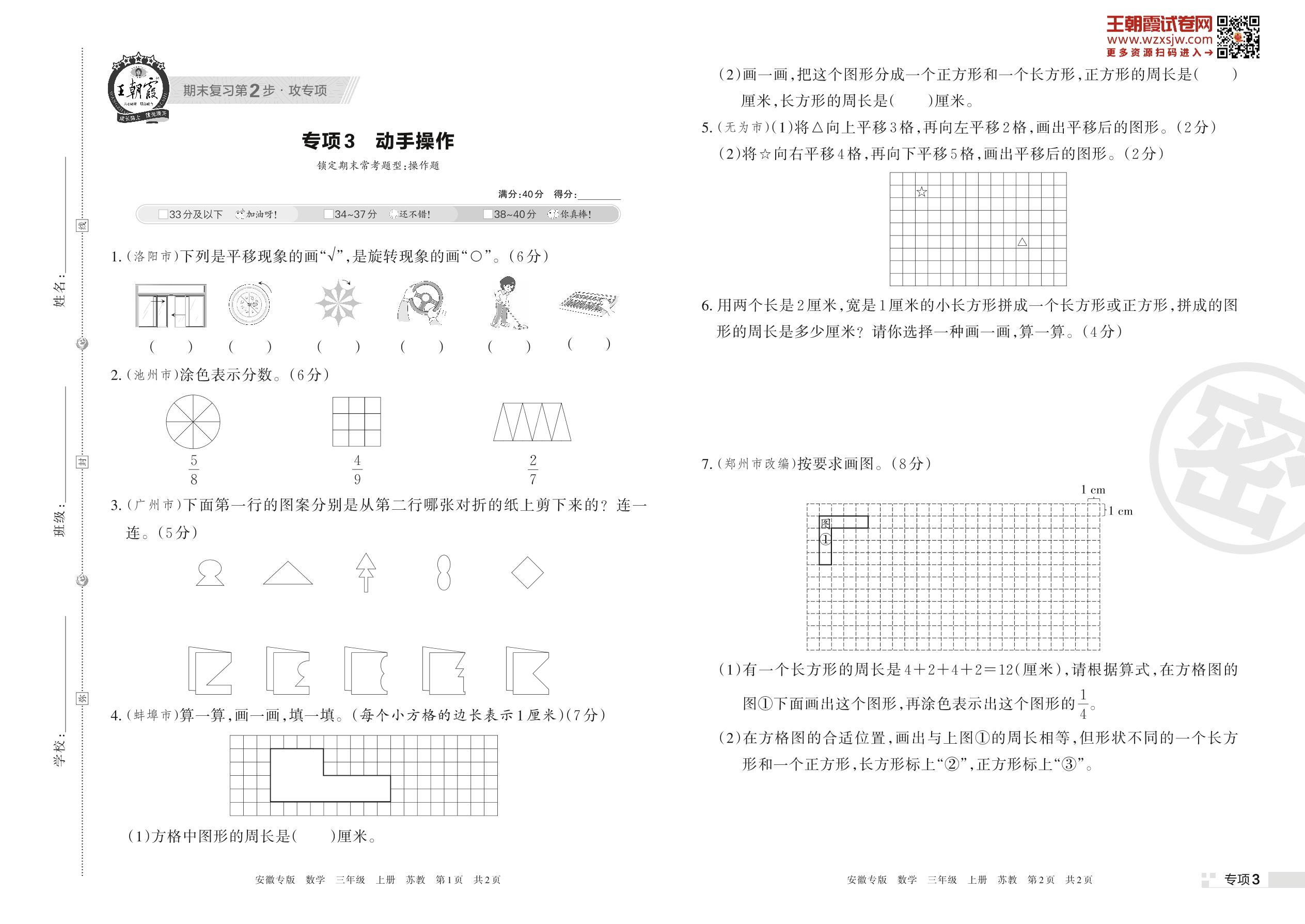王朝霞期末专项卷——动手操作三年级上册数学(苏教版)_R221126205905630【3】