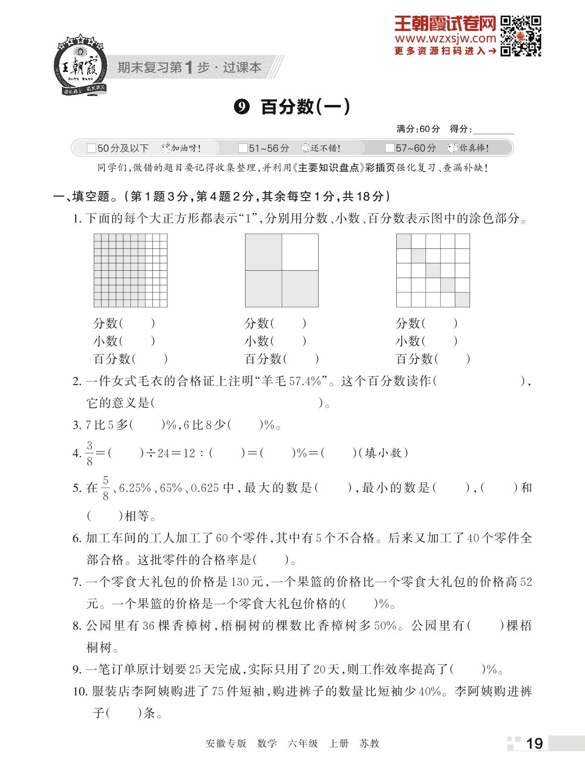 王朝霞期末过课本——9 百分数(一)六年级上册数学(苏教版)_R221126211746491