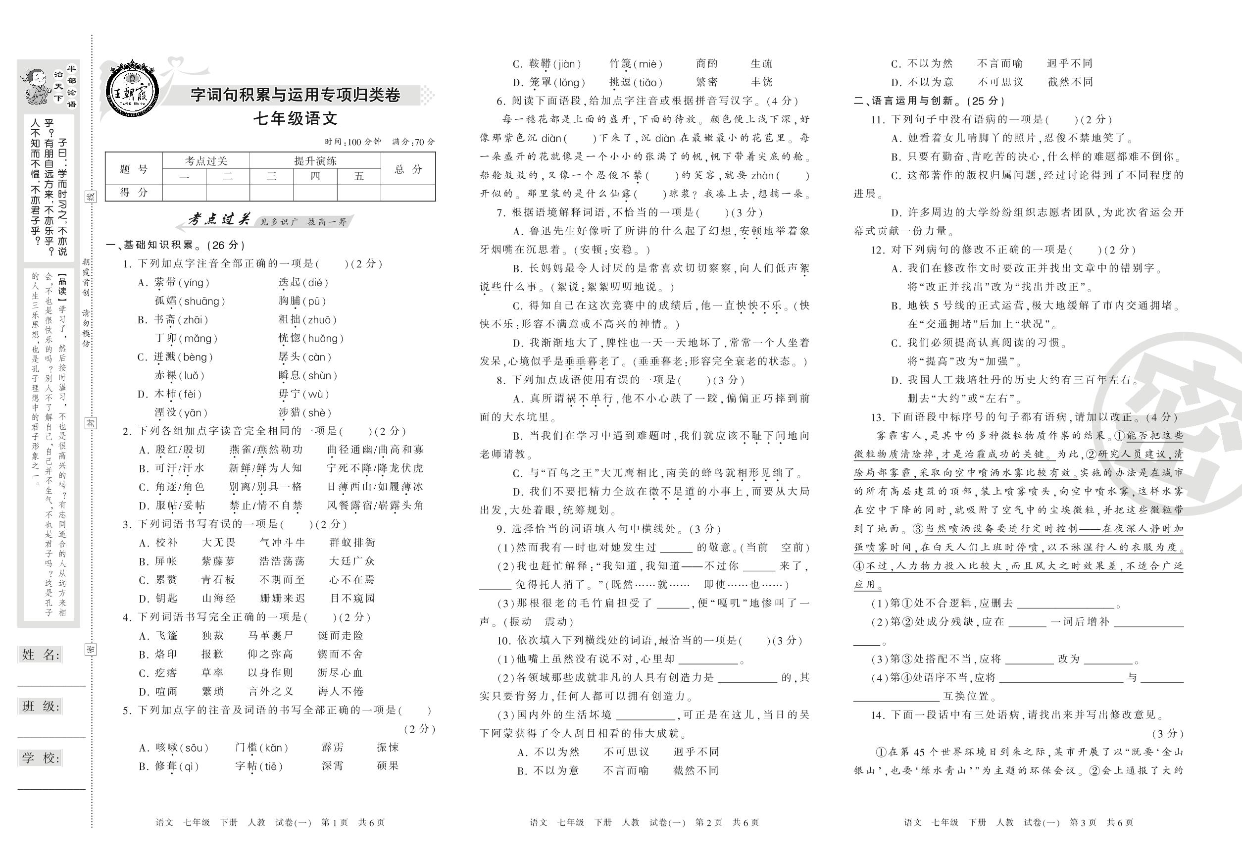 王朝霞期末专项卷七年级下册语文(人教版)_R210802135338【1】