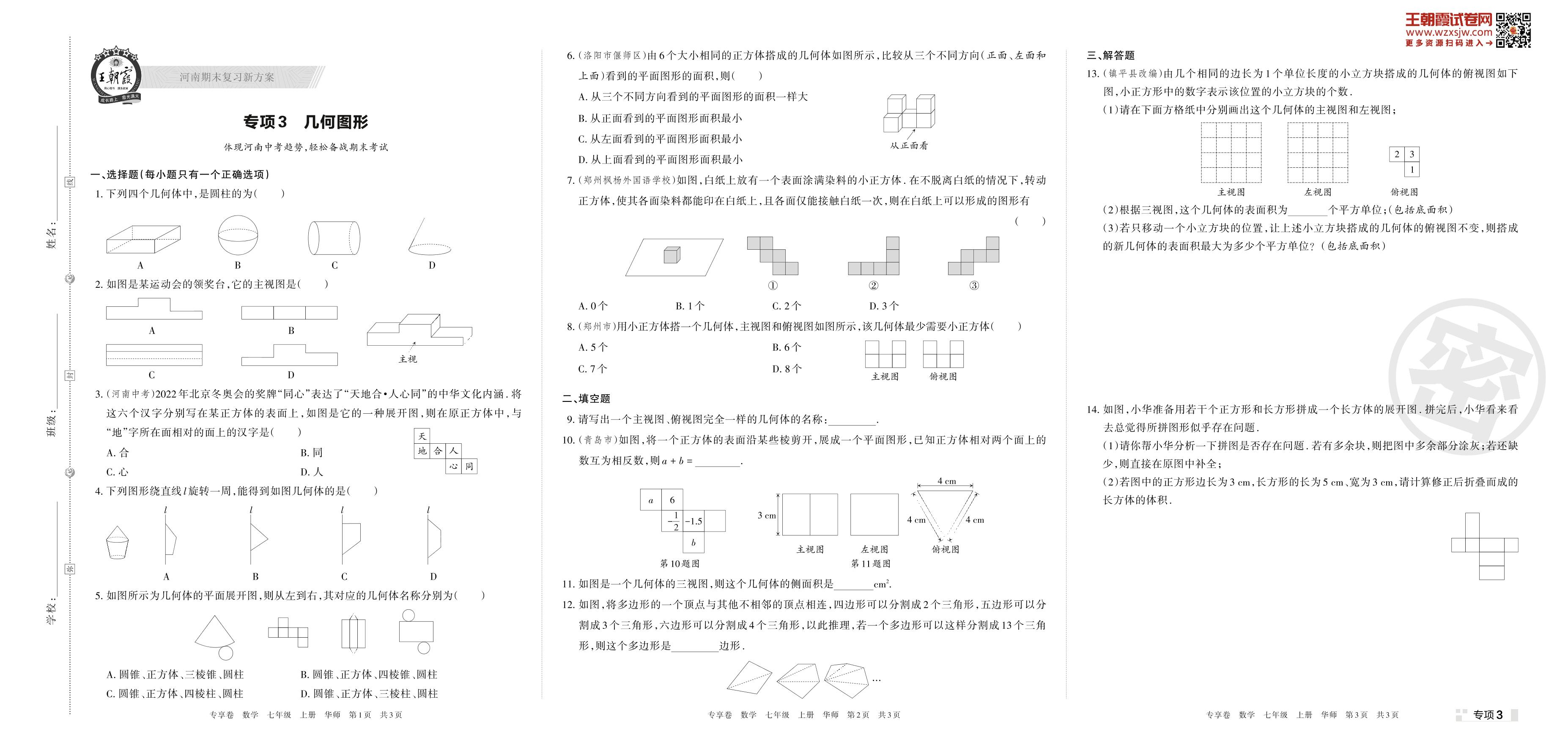 王朝霞期末专项卷——几何图形七年级上册数学(华师版)【3】