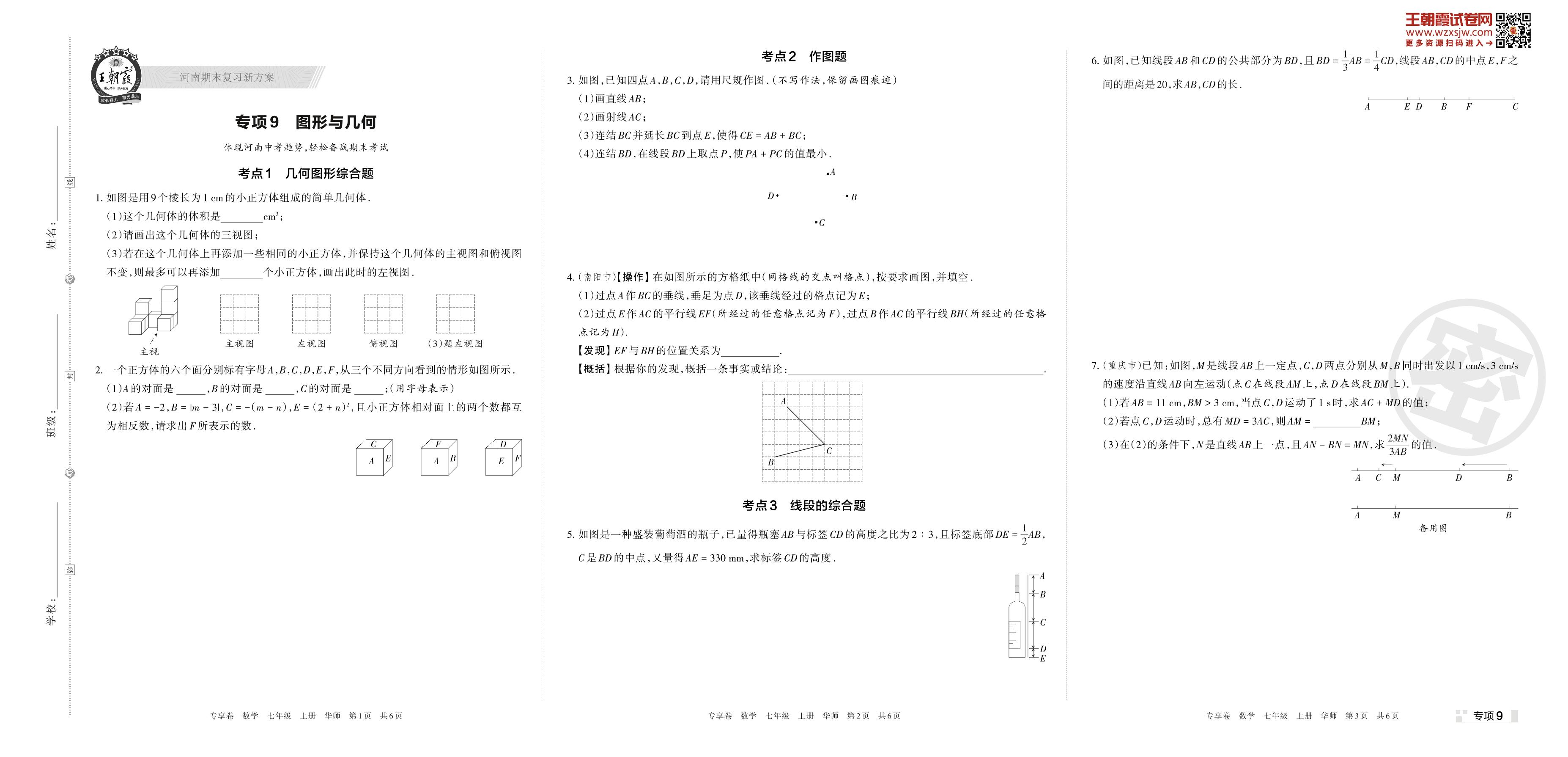 王朝霞期末专项卷——图形与几何七年级上册数学(华师版)【9】