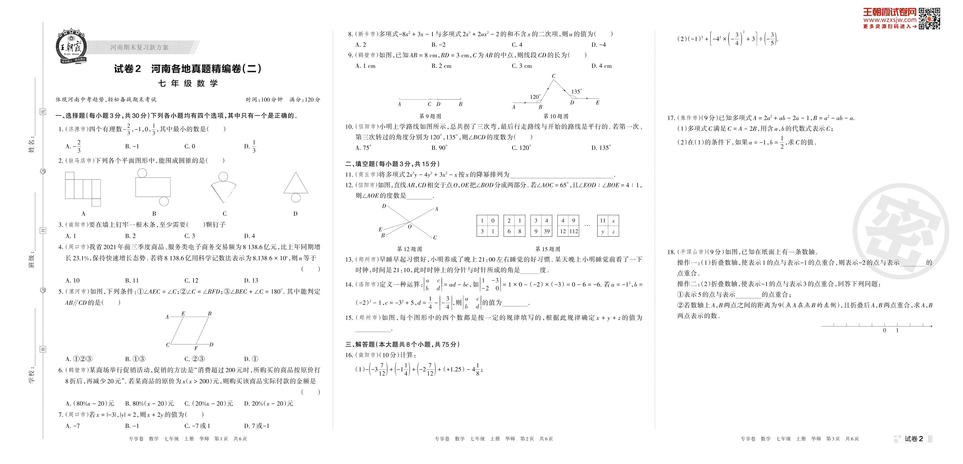 河南各地真题精编卷(二)七年级上册数学(华师版)【2】