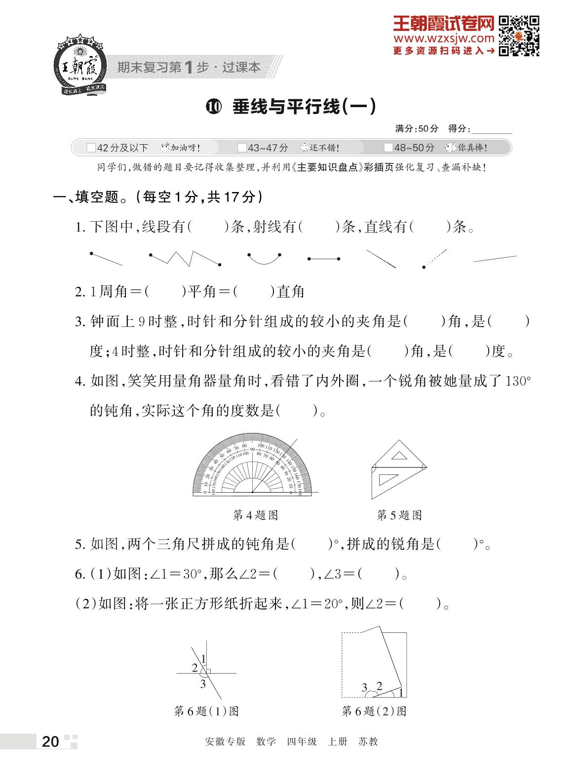 王朝霞期末过课本——10 垂线与平行线(一)四年级上册数学(苏教版)_R221126212701193