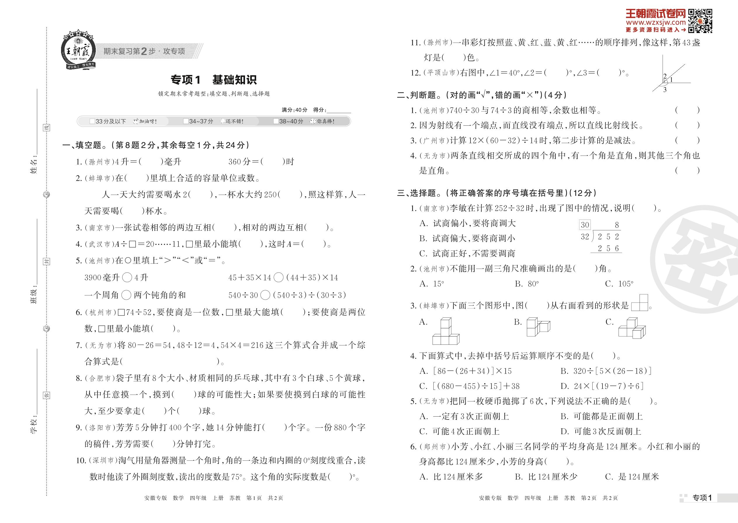 王朝霞期末专项卷——基础知识四年级上册数学(苏教版)_R221126212702030【1】