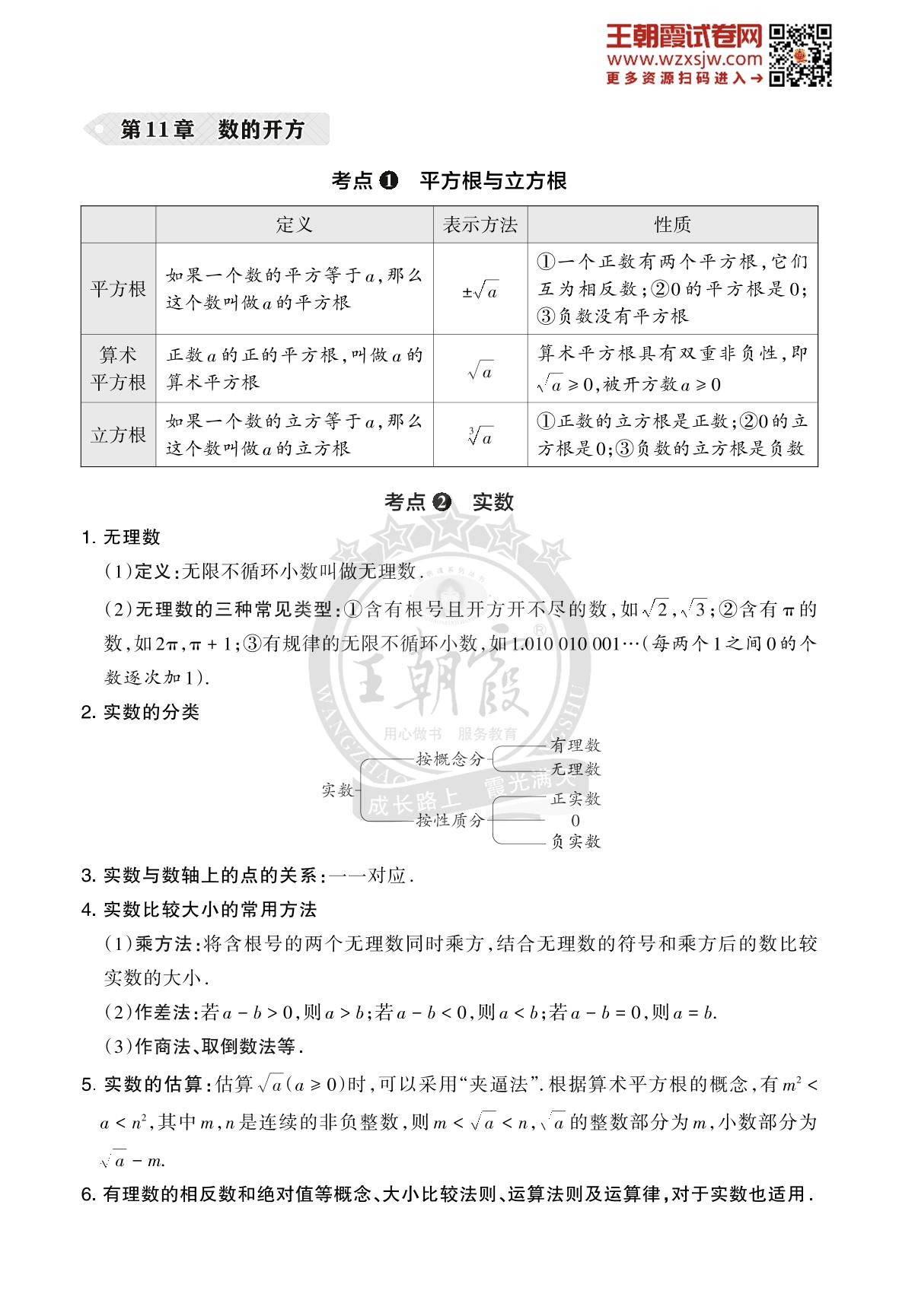 王朝霞期末过课本——第11章 数的开方八年级上册数学(华师版)