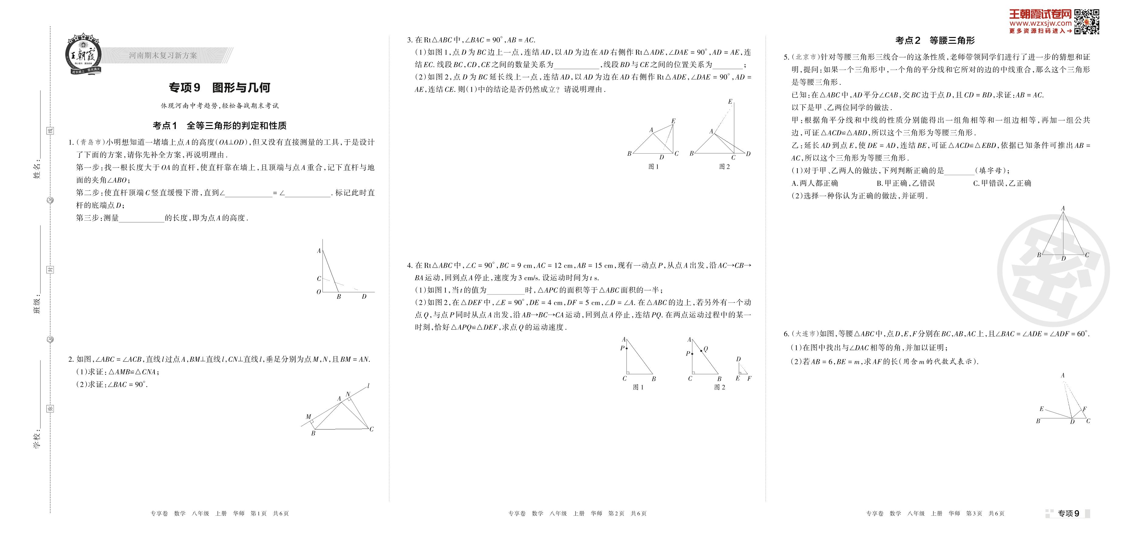 王朝霞期末专项卷——图形与几何八年级上册数学(华师版)【9】