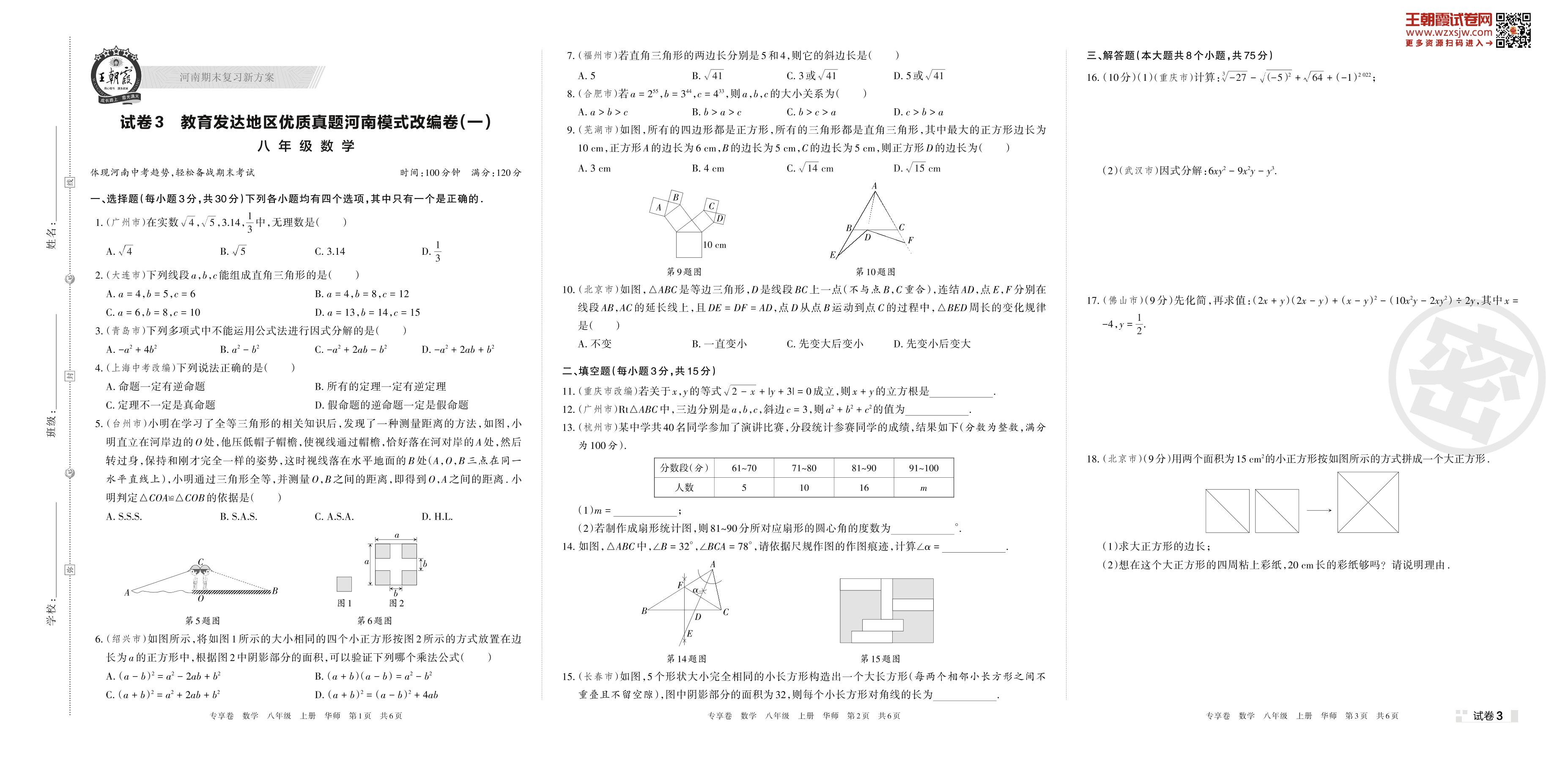 教育发达地区优质真题河南模式改编卷(一)八年级上册数学(华师版)【3】