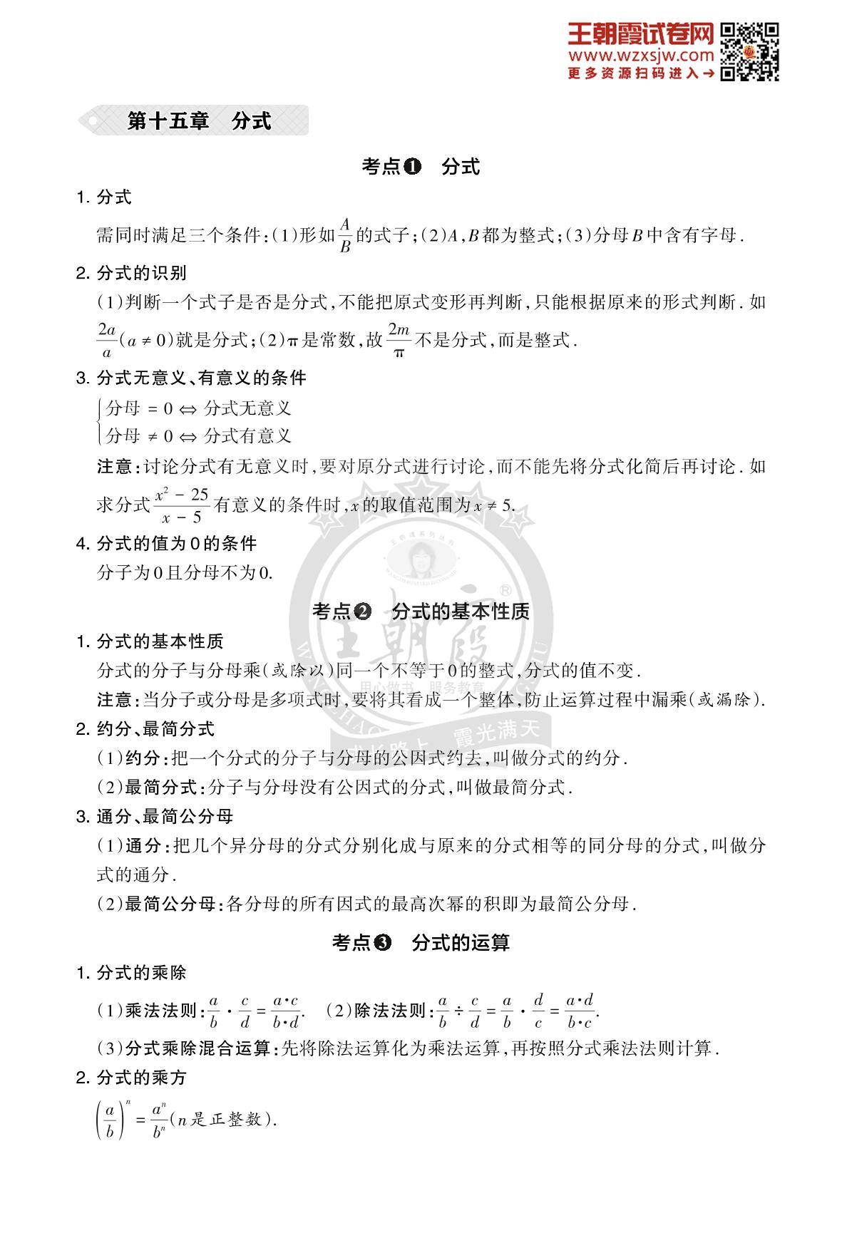 王朝霞期末过课本——第十五章 分式八年级上册数学(人教版)