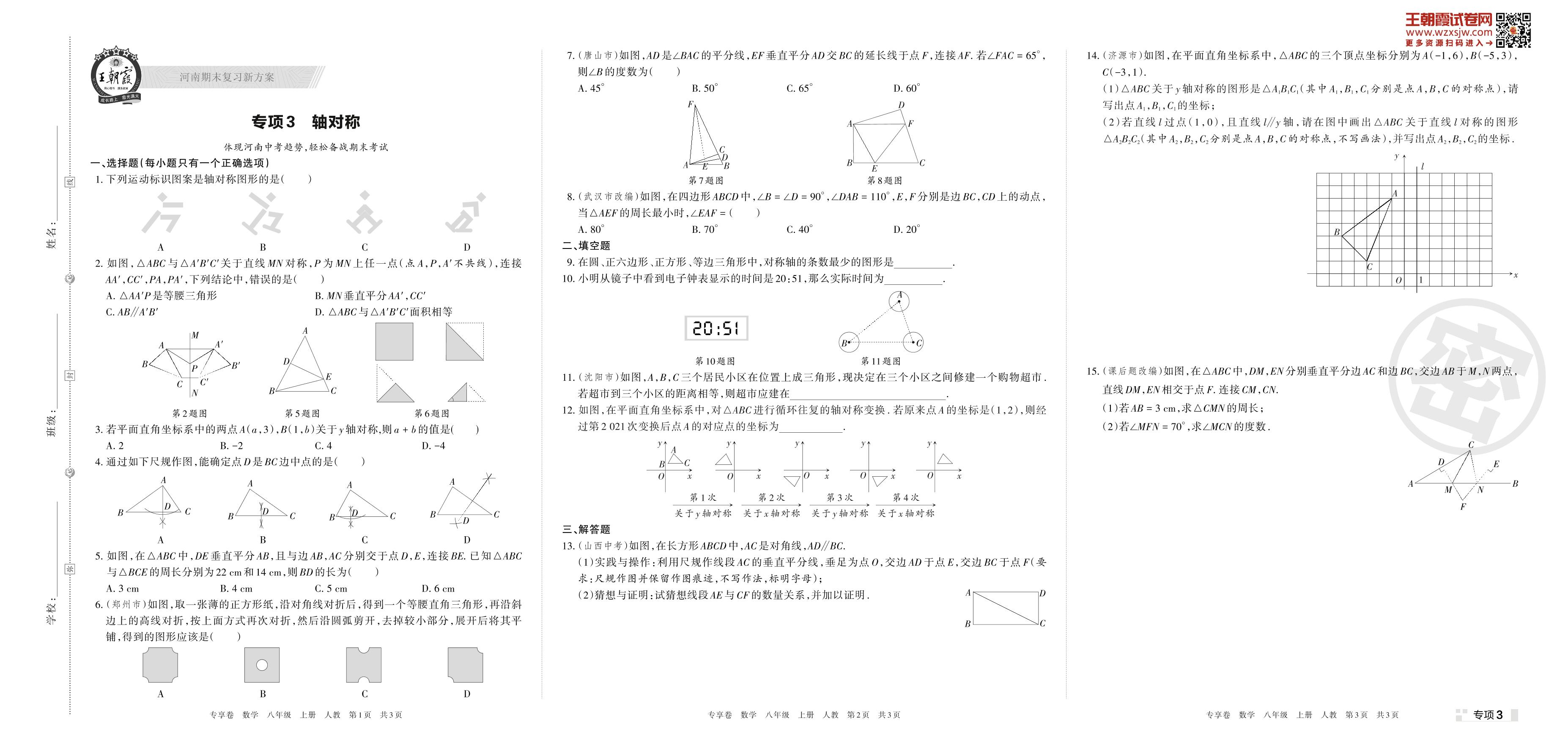 王朝霞期末专项卷——轴对称八年级上册数学(人教版)【3】