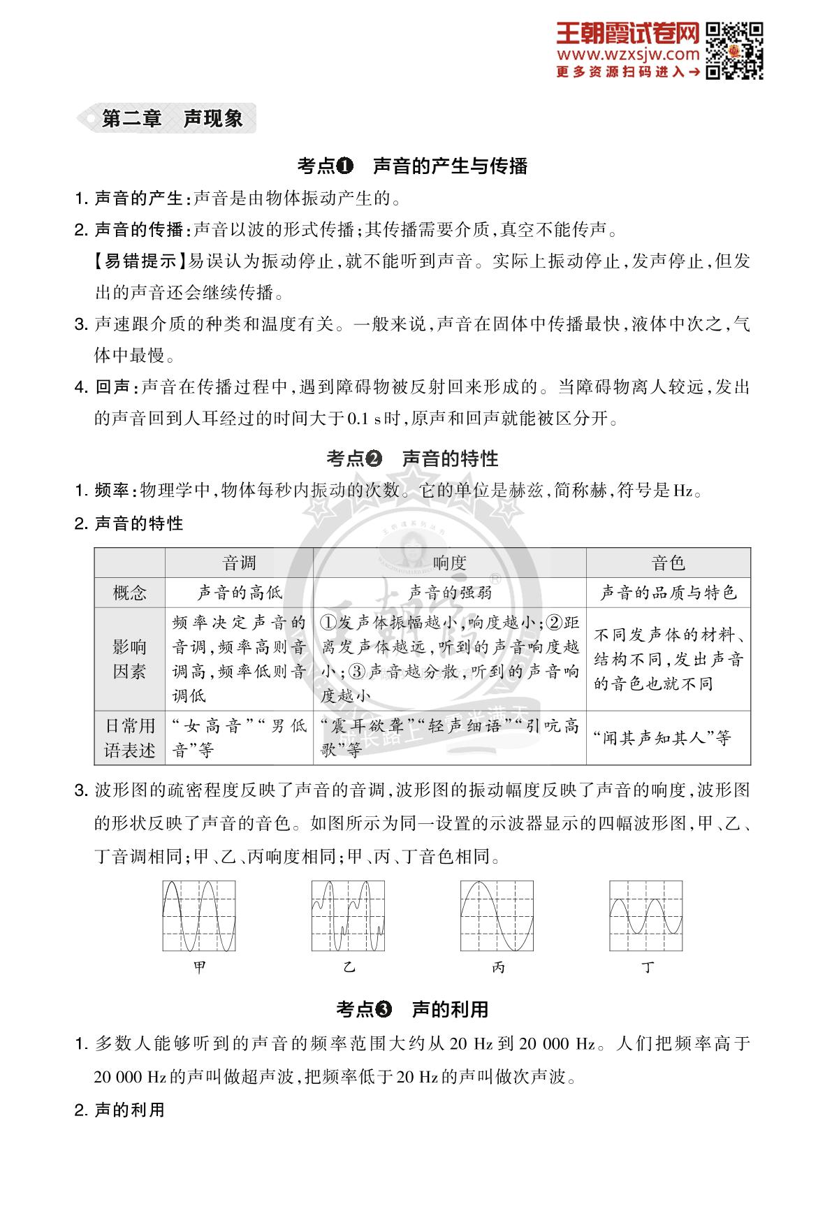 王朝霞期末过课本——第二章 声现象八年级上册物理(人教版)