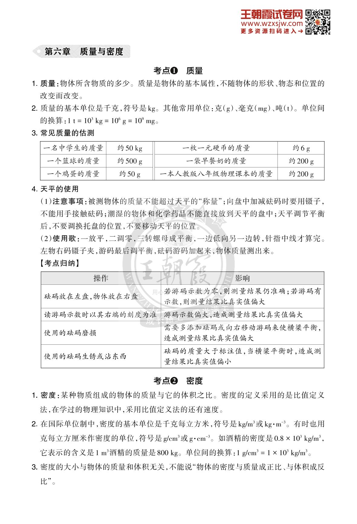 王朝霞期末过课本——第六章 质量与密度八年级上册物理(人教版)
