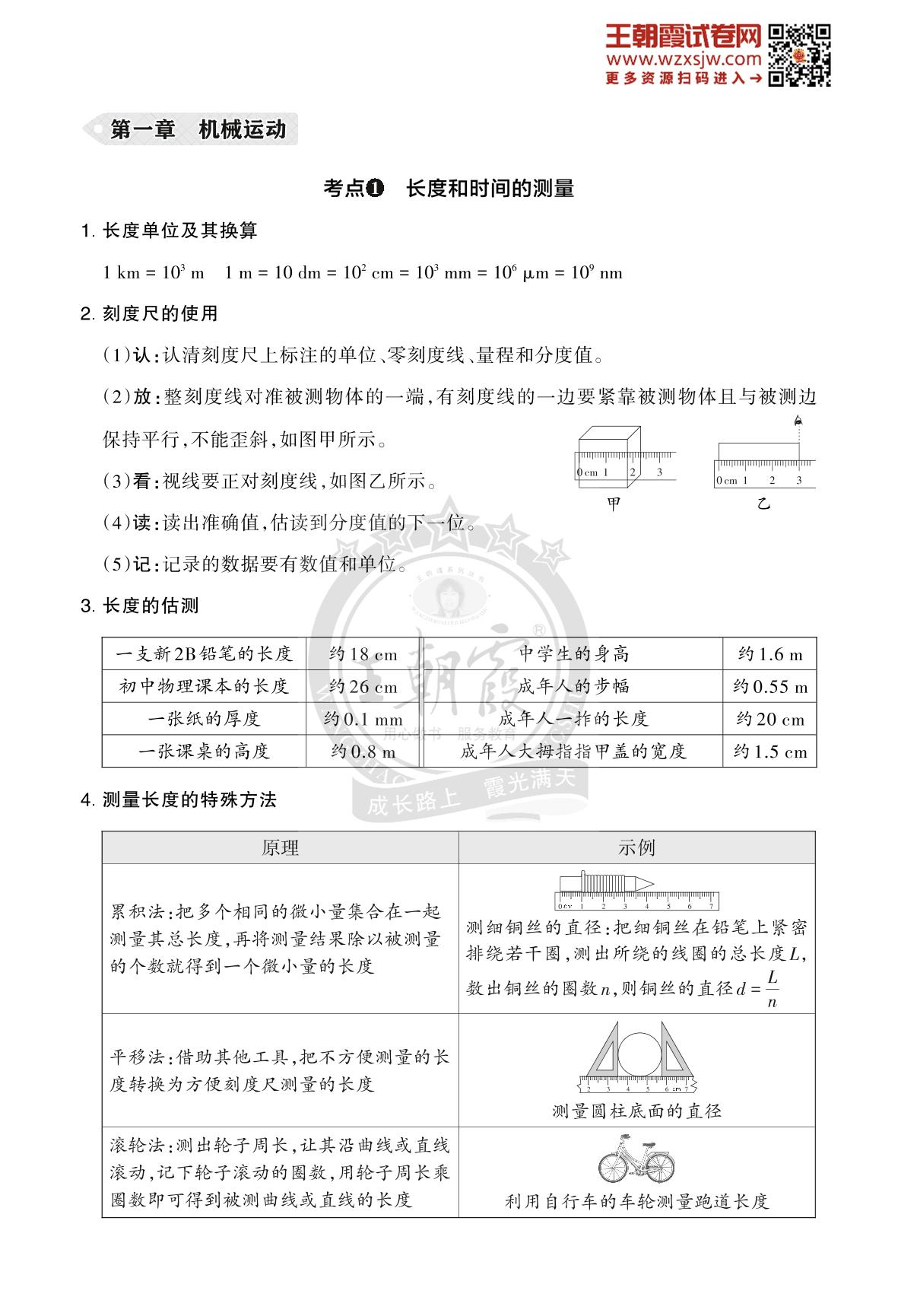王朝霞期末过课本——第一章 机械运动八年级上册物理(人教版)