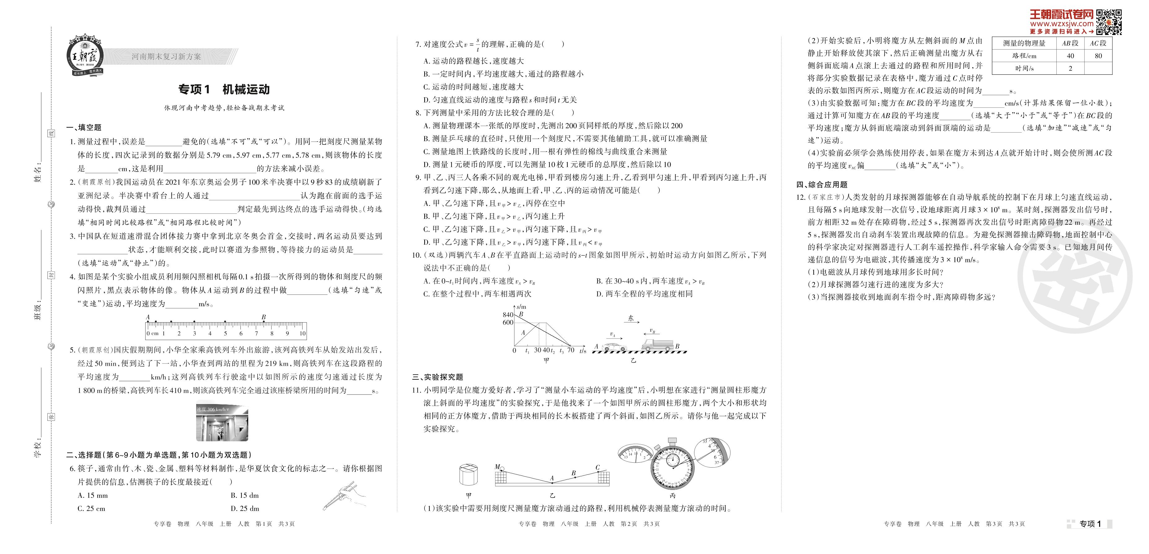 王朝霞期末专项卷——机械运动八年级上册物理(人教版)【1】