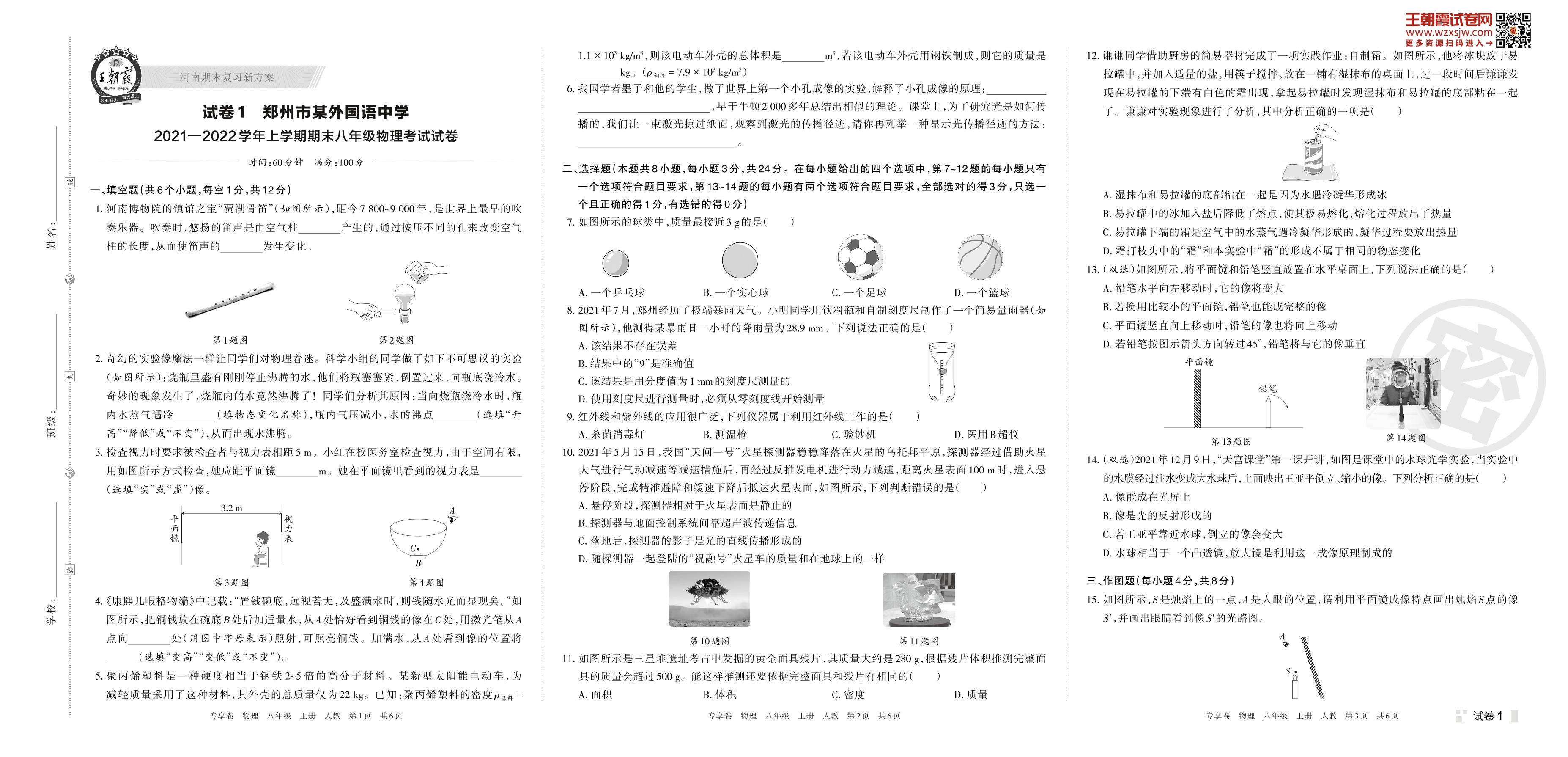 郑州市某外国语中学2021—2022学年上学期期末八年级物理考试试卷(人教版)_R221126224531937【1】