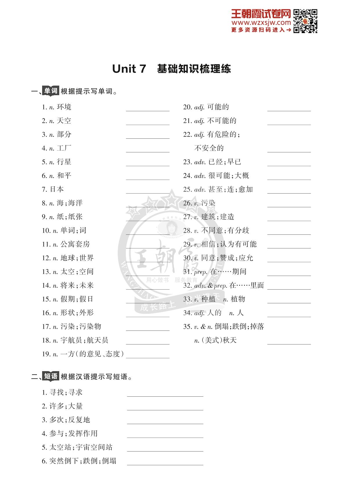 王朝霞期末过基础——Unit 7 基础知识梳理练八年级上册英语(人教版)