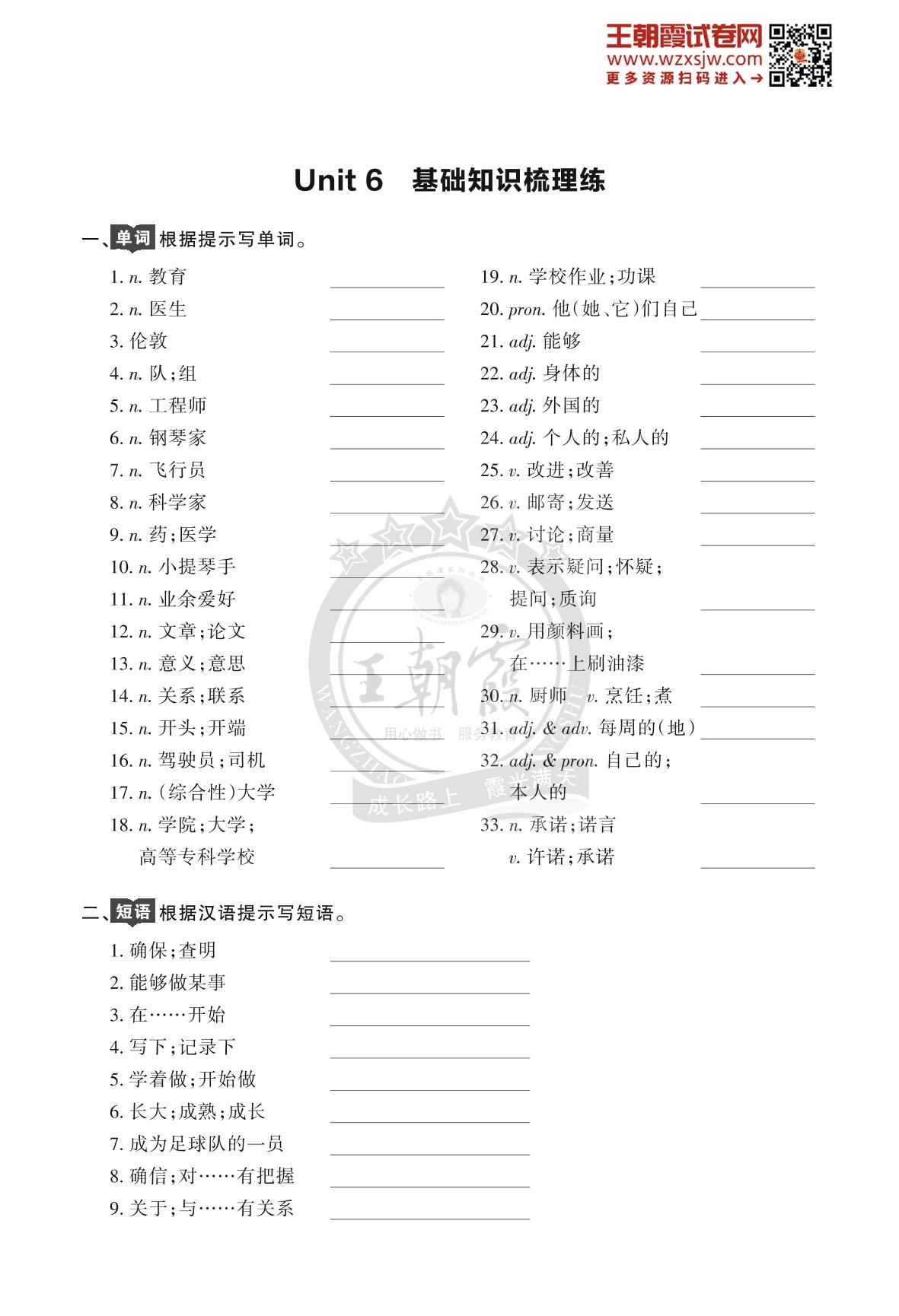 王朝霞期末过基础——Unit 6 基础知识梳理练八年级上册英语(人教版)