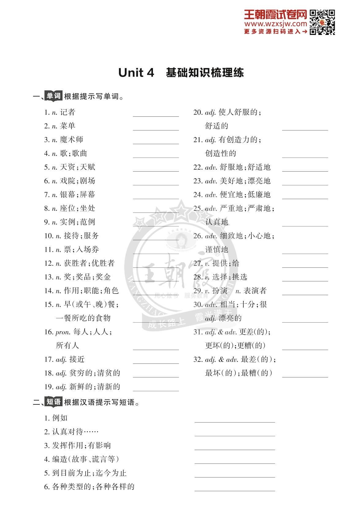王朝霞期末过基础——Unit 4 基础知识梳理练八年级上册英语(人教版)