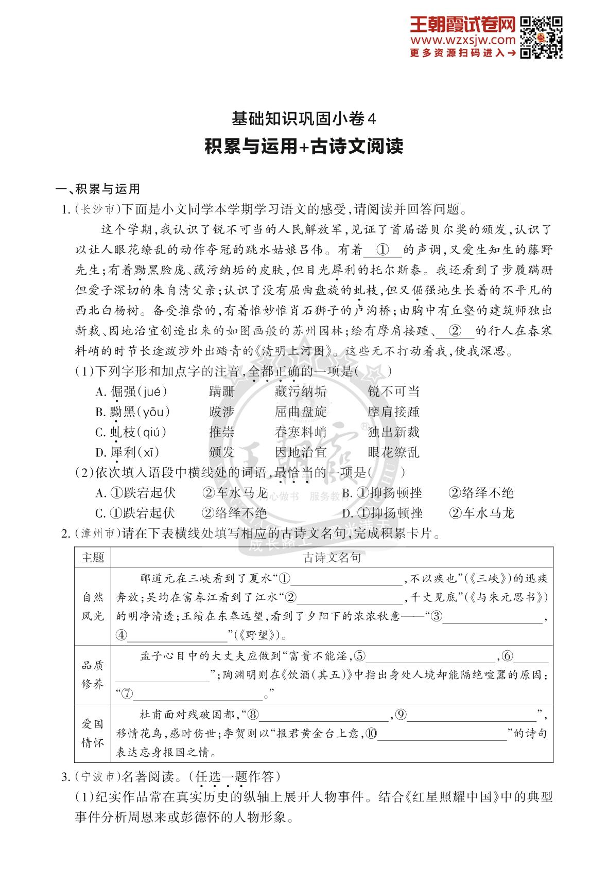 王朝霞期末过基础——基础知识巩固小卷4八年级上册语文(人教版)