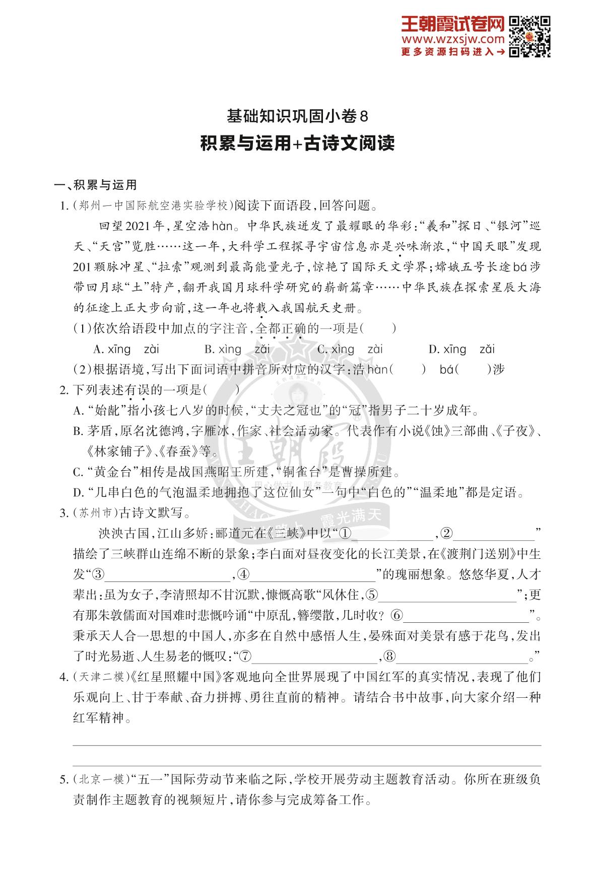 王朝霞期末过基础——基础知识巩固小卷8八年级上册语文(人教版)
