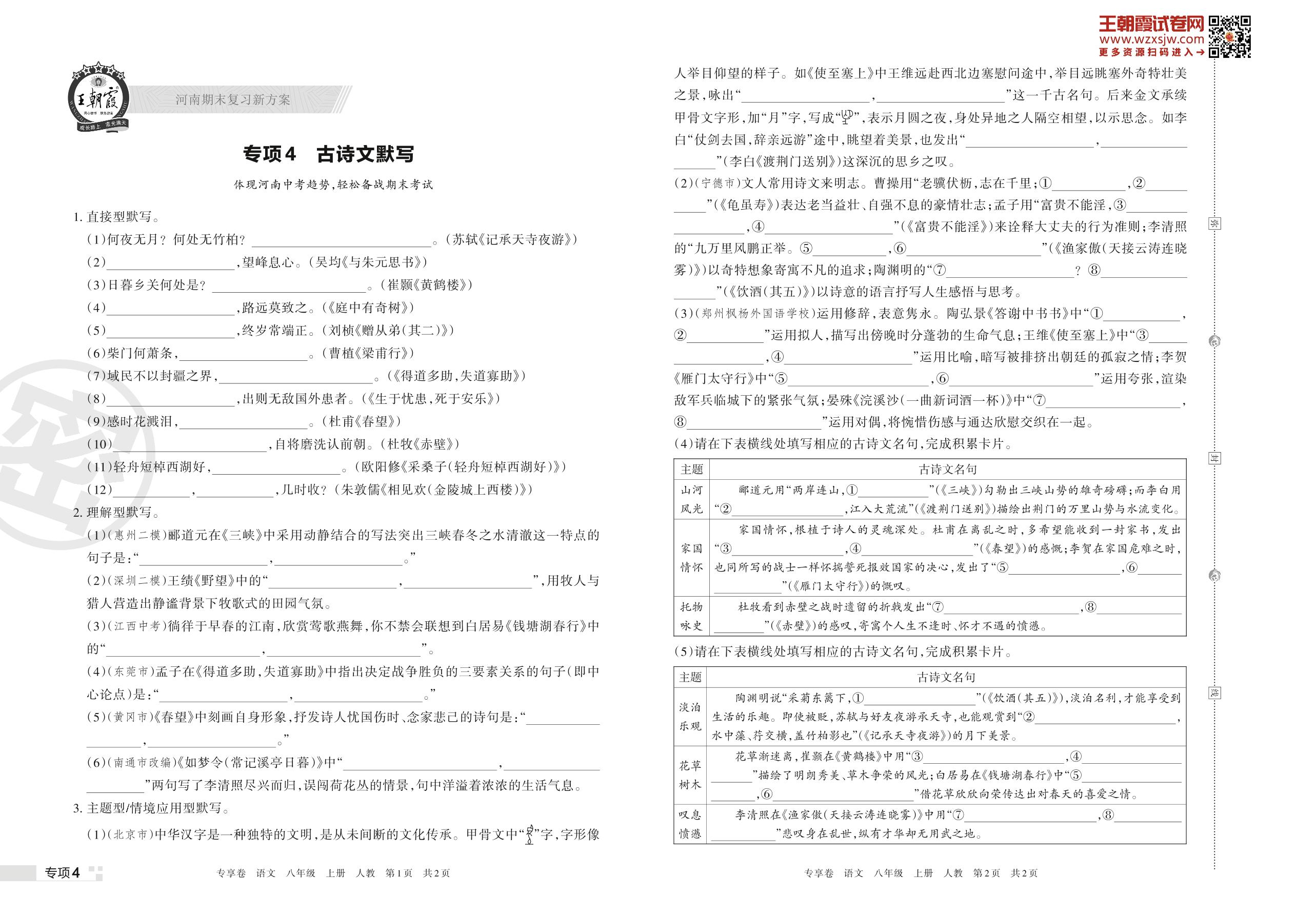 王朝霞期末专项卷——古诗文默写八年级上册语文(人教版)_R221126235022996【4】