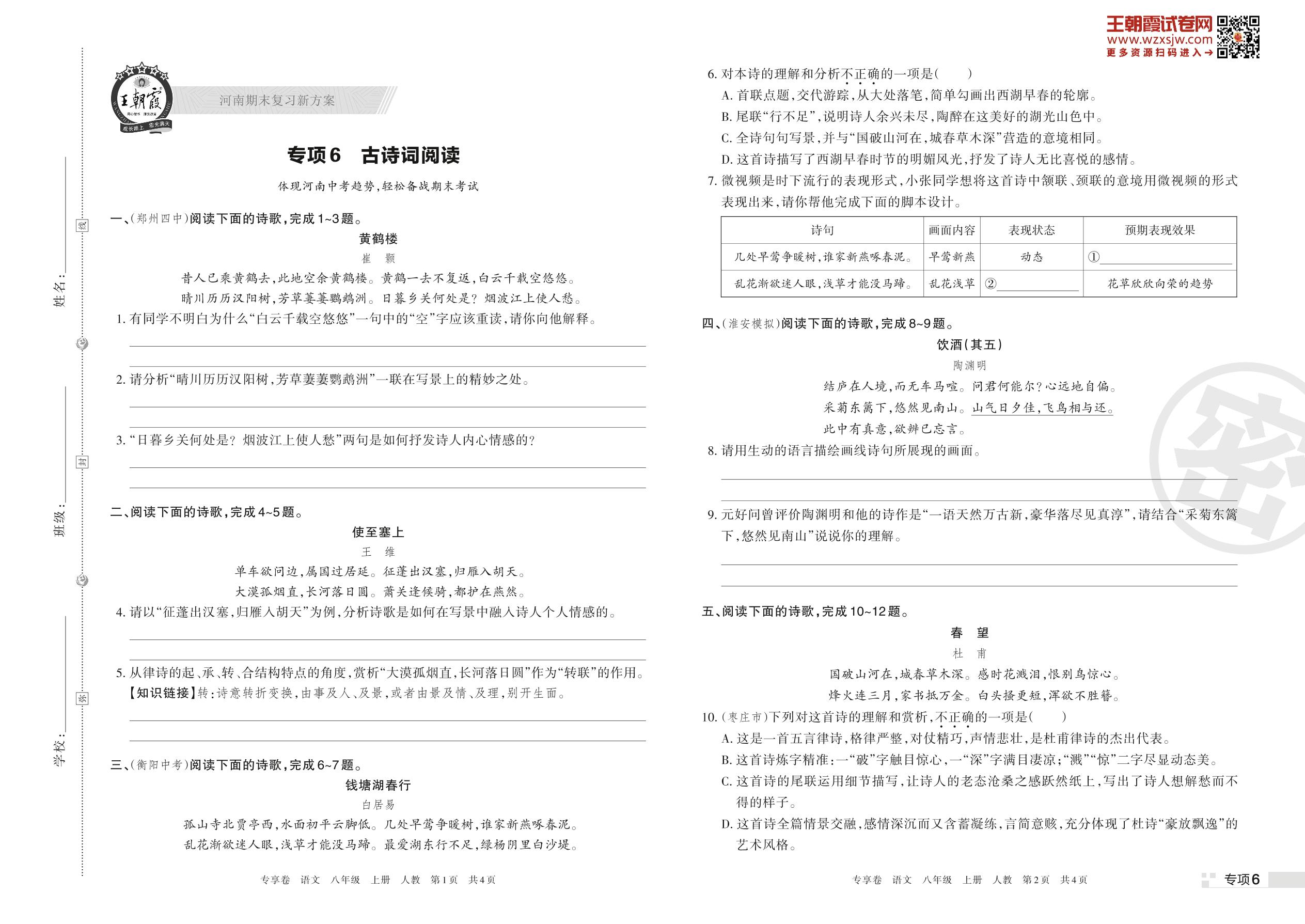 王朝霞期末专项卷——古诗词阅读八年级上册语文(人教版)_R221126235023843【6】