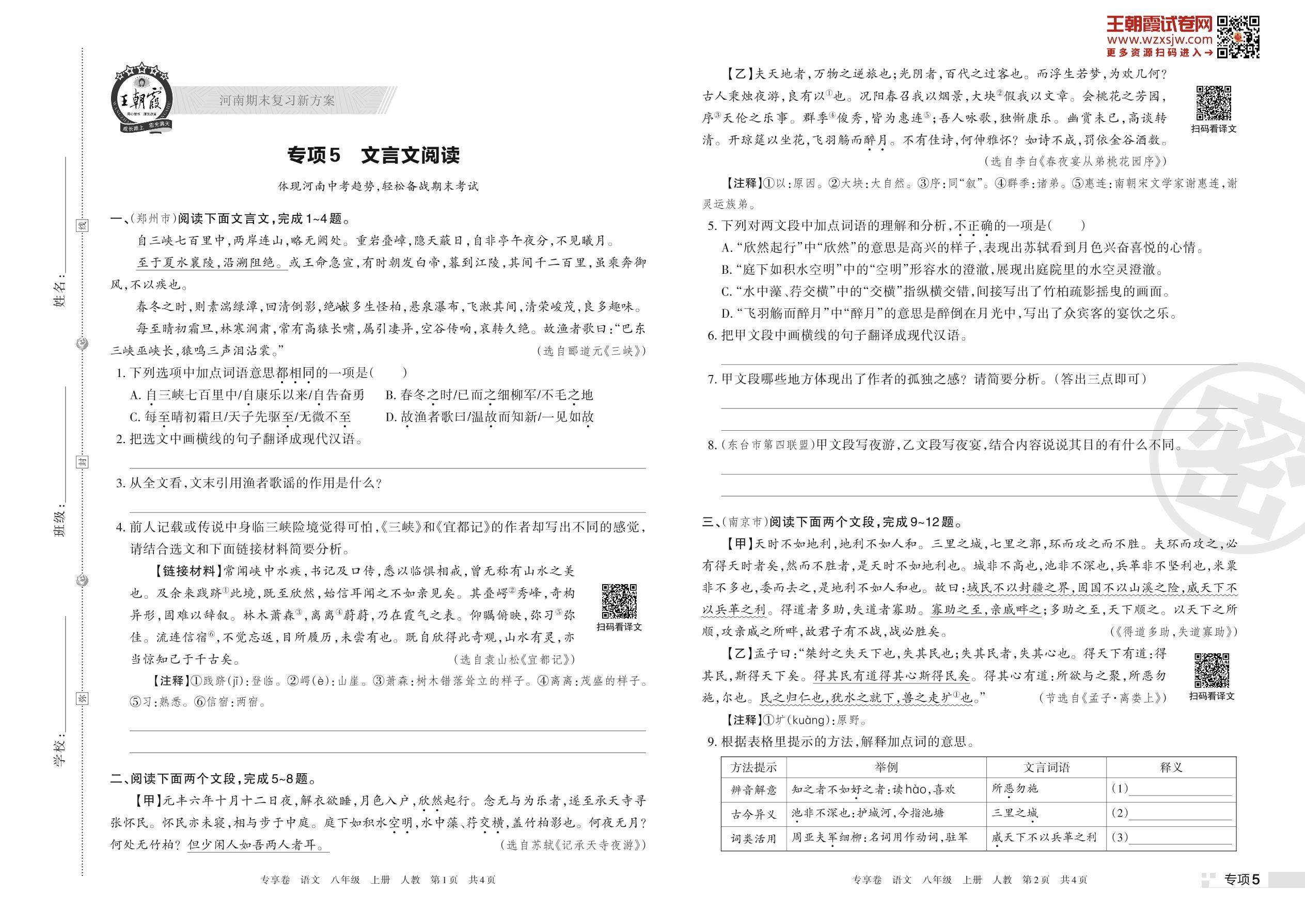 王朝霞期末专项卷——文言文阅读八年级上册语文(人教版)_R221126235023489【5】