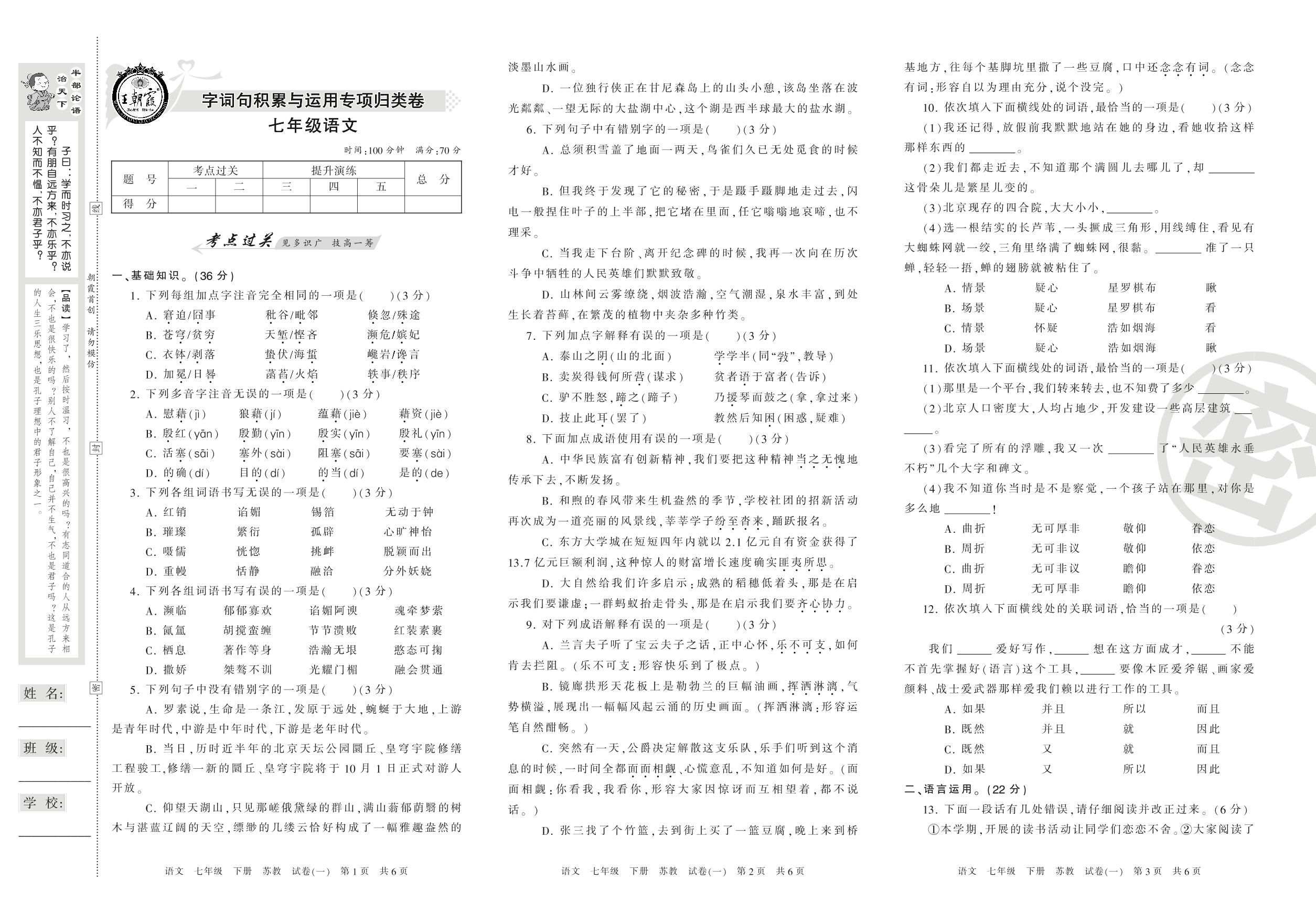 王朝霞期末专项卷七年级下册语文(苏教版)_R210802140155【1】